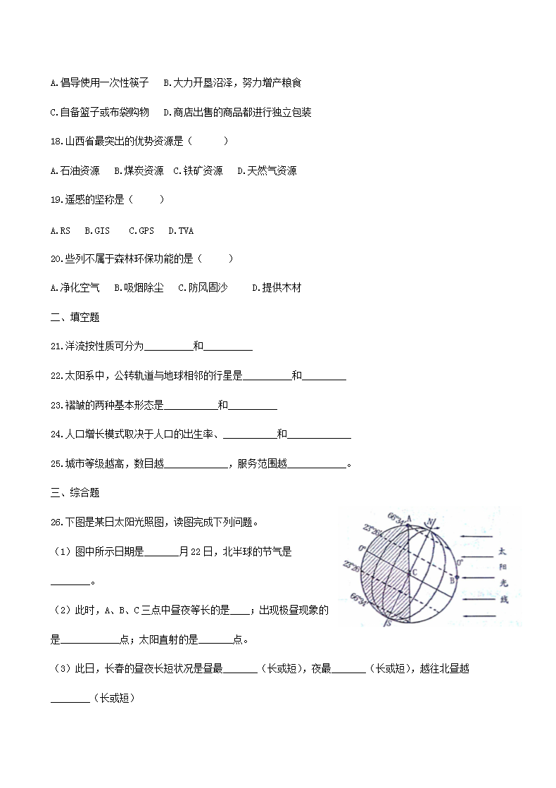 【文档名称】 2011年吉林高中会考地理真题及答案(Word版).doc