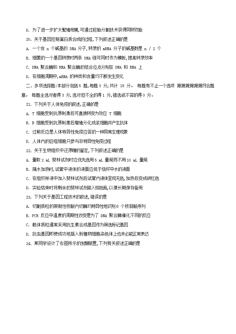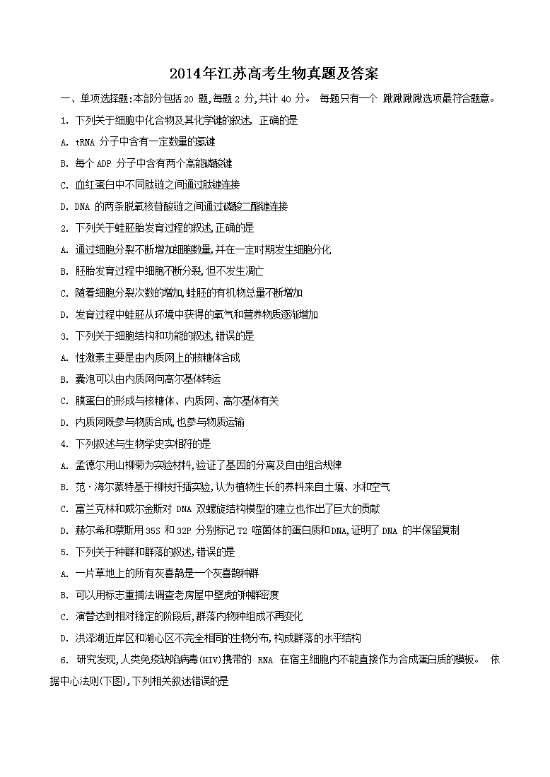 【文档名称】 2014年江苏高考生物真题及答案(Word版).doc