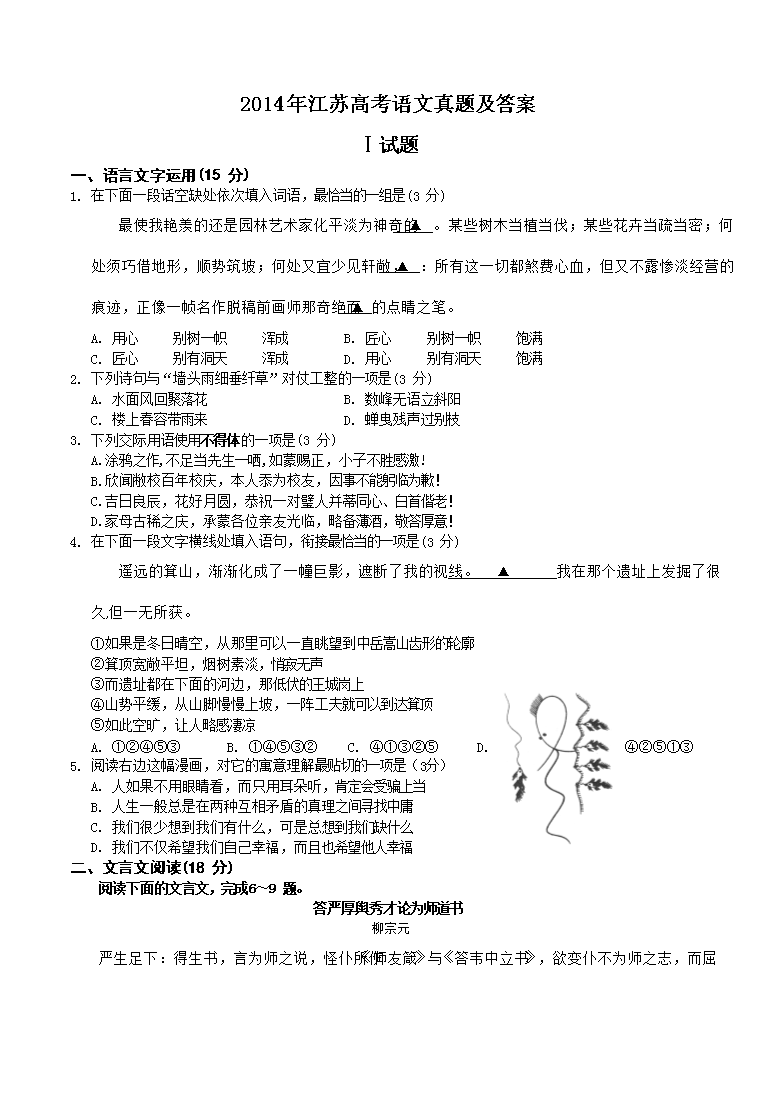 【文档名称】 2014年江苏高考语文真题及答案(Word版).doc
