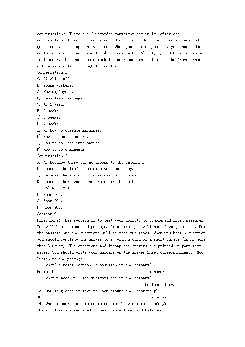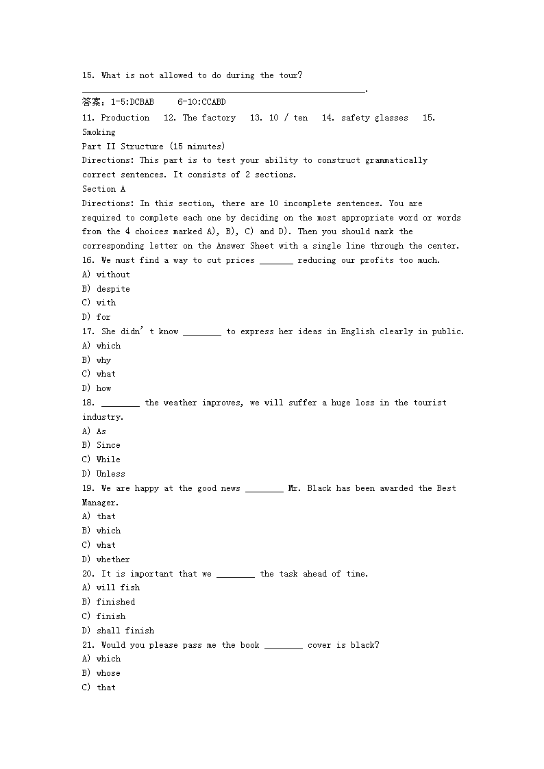 【文档名称】 2012年6月大学英语三级B真题及答案(Word版).doc