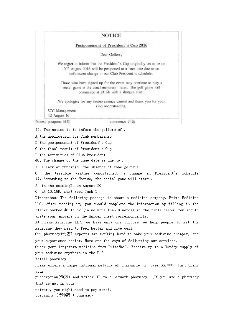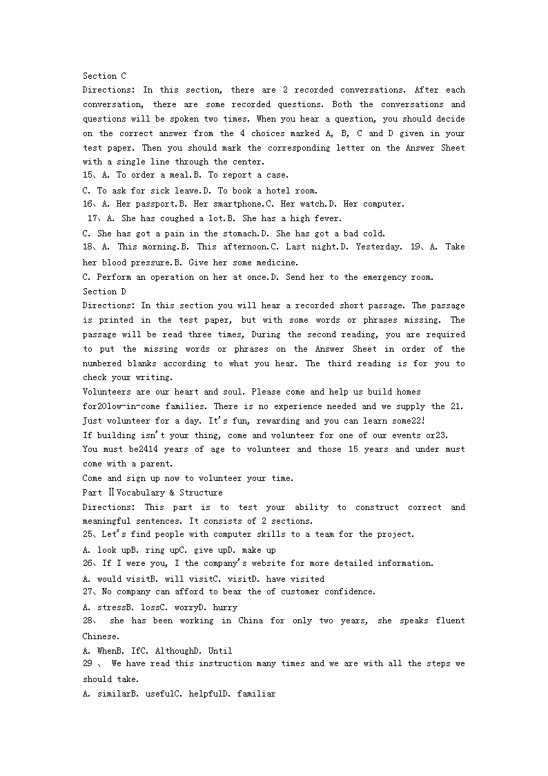 【文档名称】 2018年6月大学英语三级B真题及答案(Word版).doc