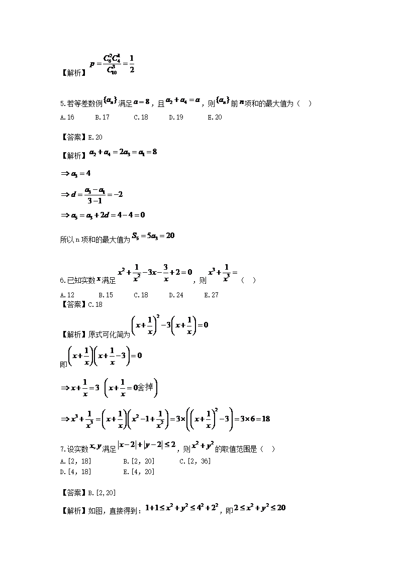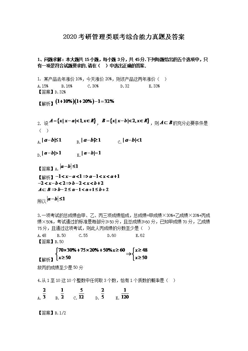 【文档名称】 2020考研管理类联考综合能力真题及答案(Word版).doc