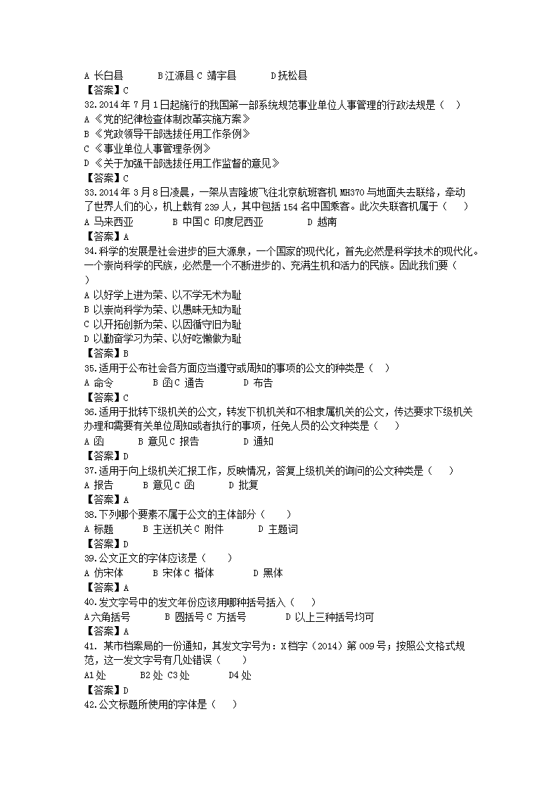 【文档名称】 2014年吉林省延边事业单位真题及答案(Word版).doc