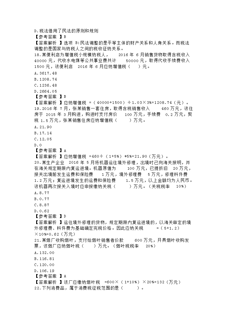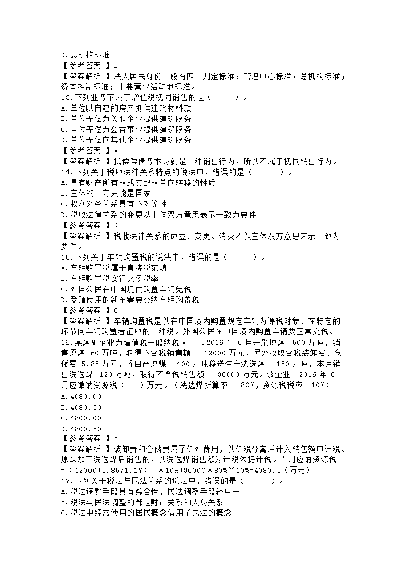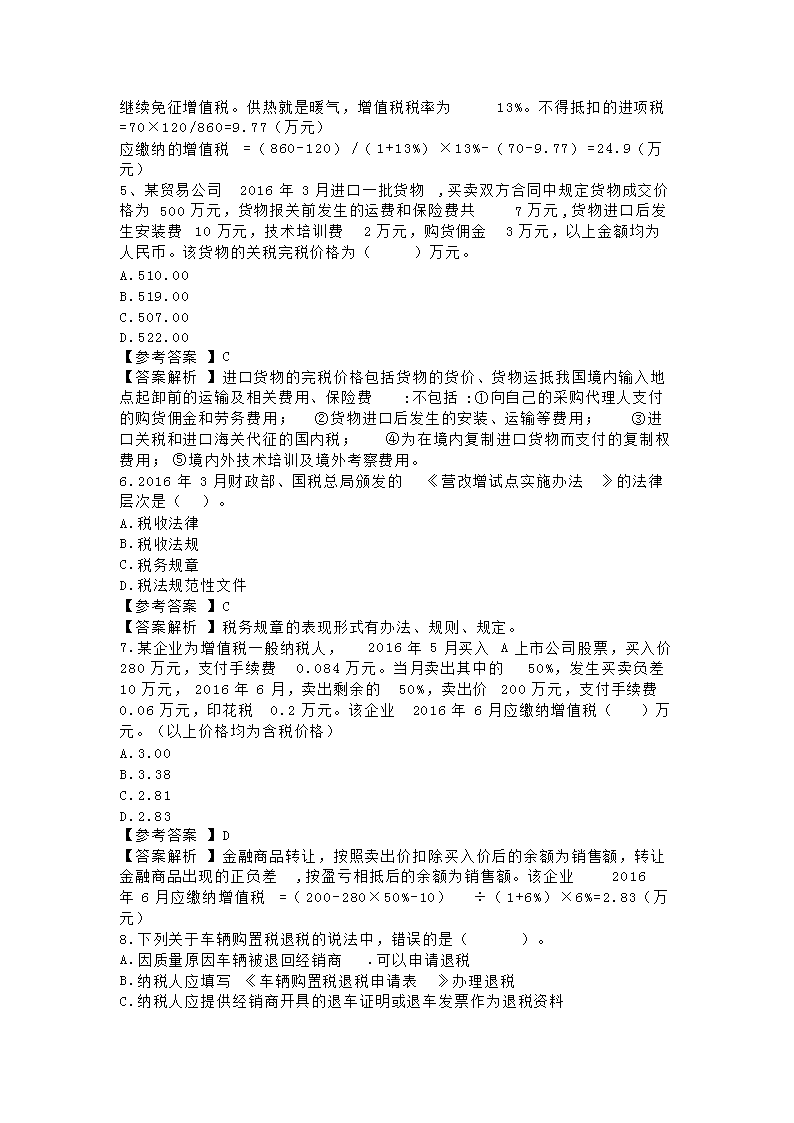 【文档名称】 2016年注册税务师考试税法一真题及答案(Word版).doc