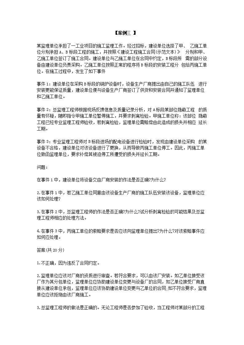 【文档预览】 无忧考网整理发布2004年监理工程师考试案例分析真题及答案(Word版),前五页预览如下: