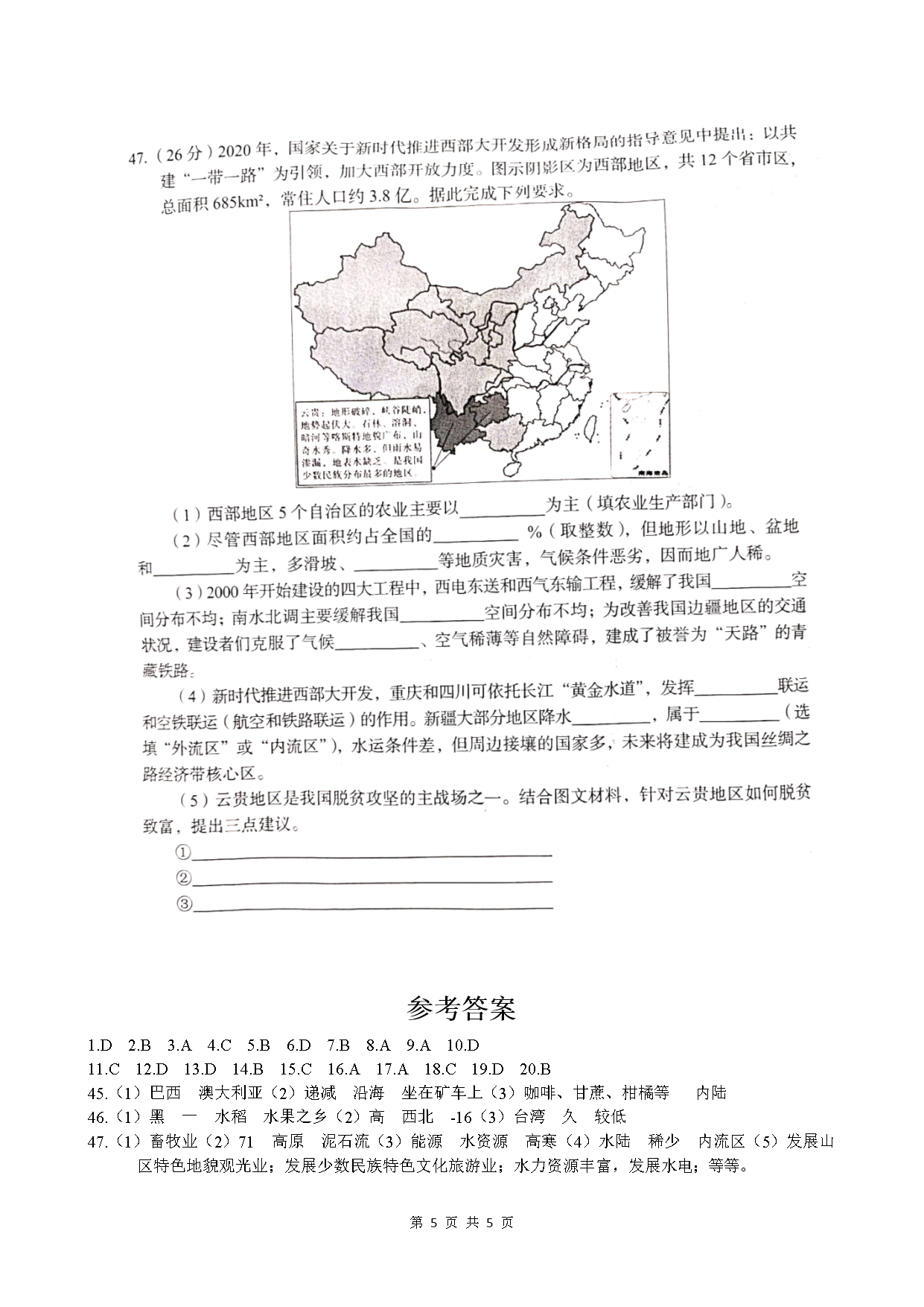 【文档预览】 无忧考网整理发布2020年四川绵阳中考地理真题及答案(图片版),前五页预览如下: