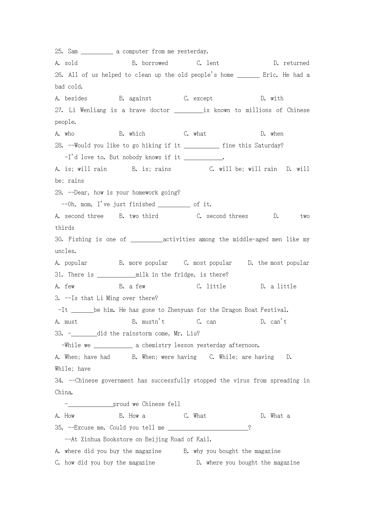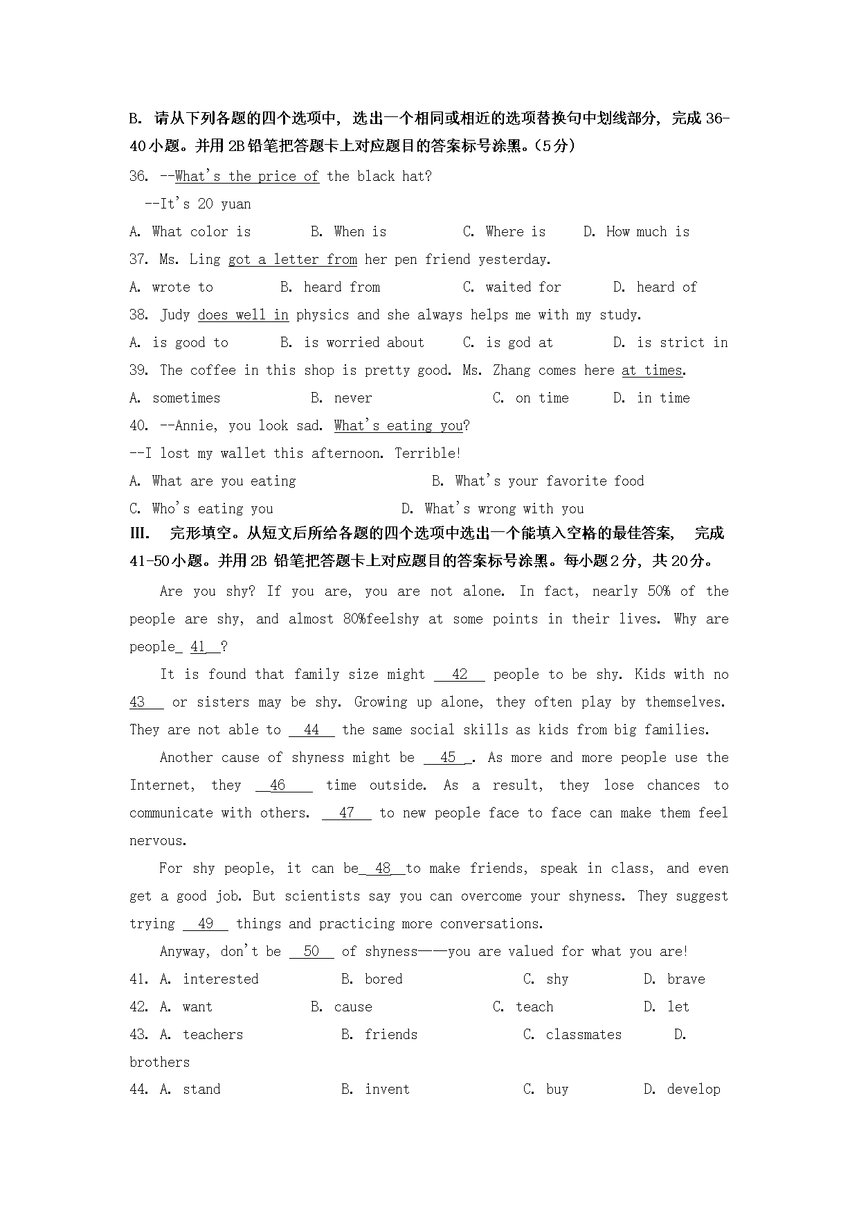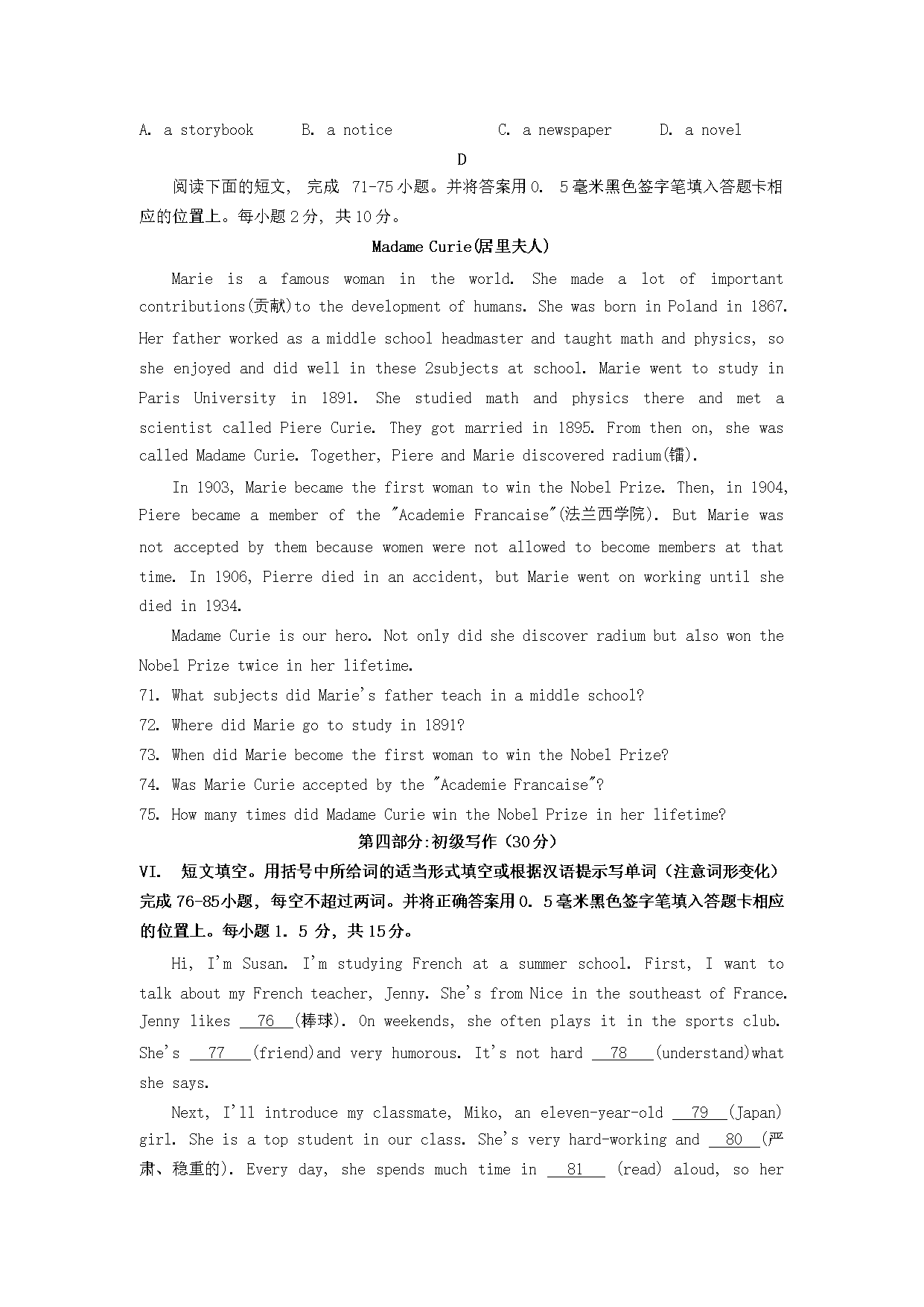 【文档预览】 无忧考网整理发布2020年贵州黔东南州中考英语真题及答案(Word版),前五页预览如下: