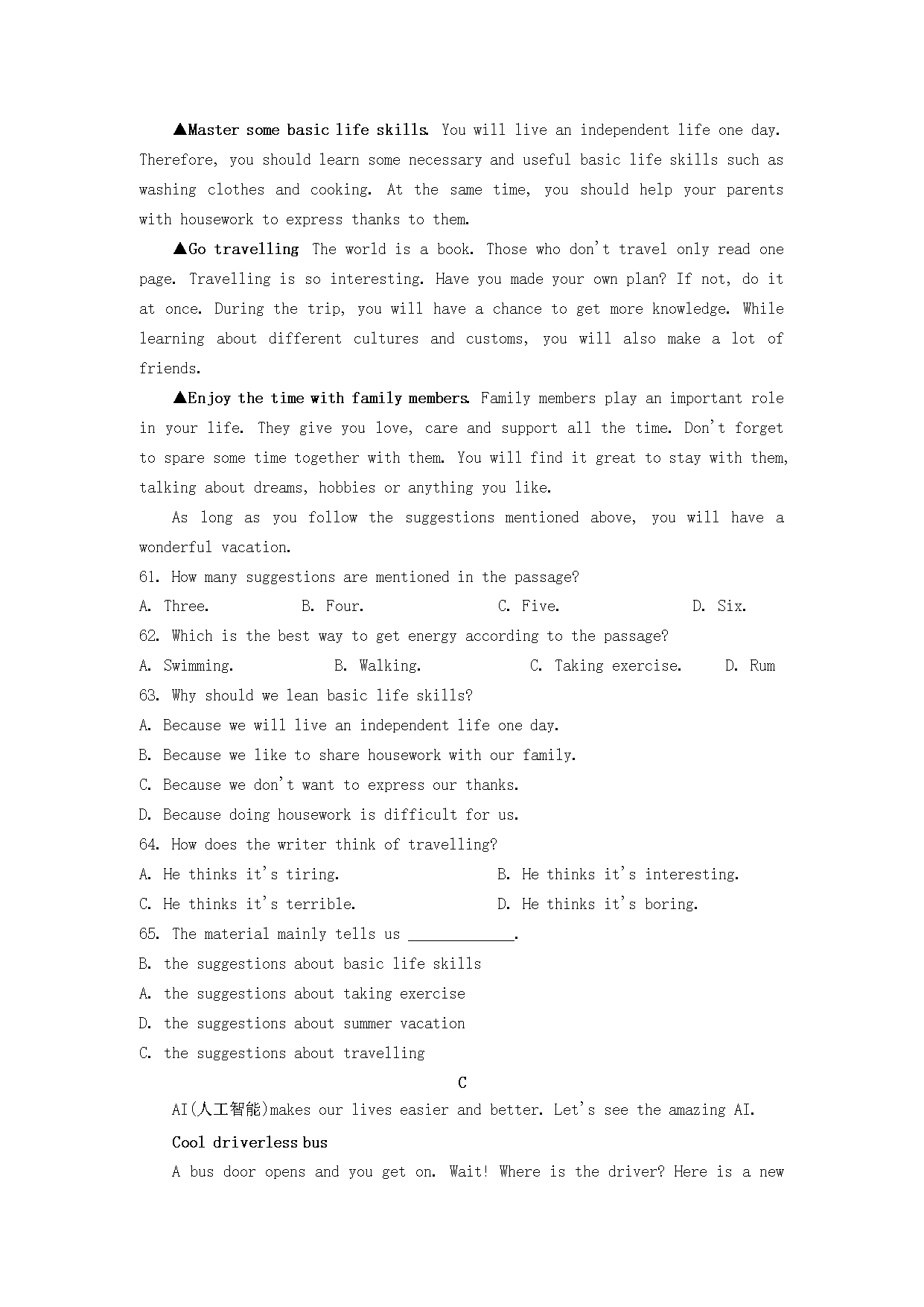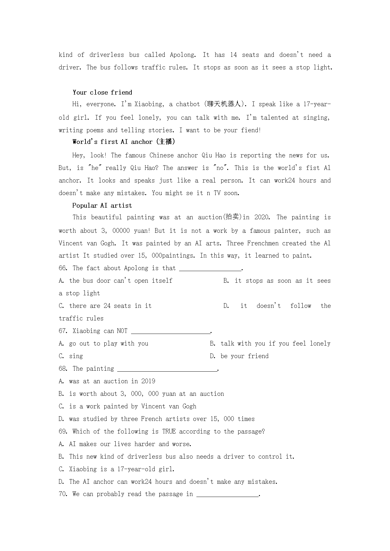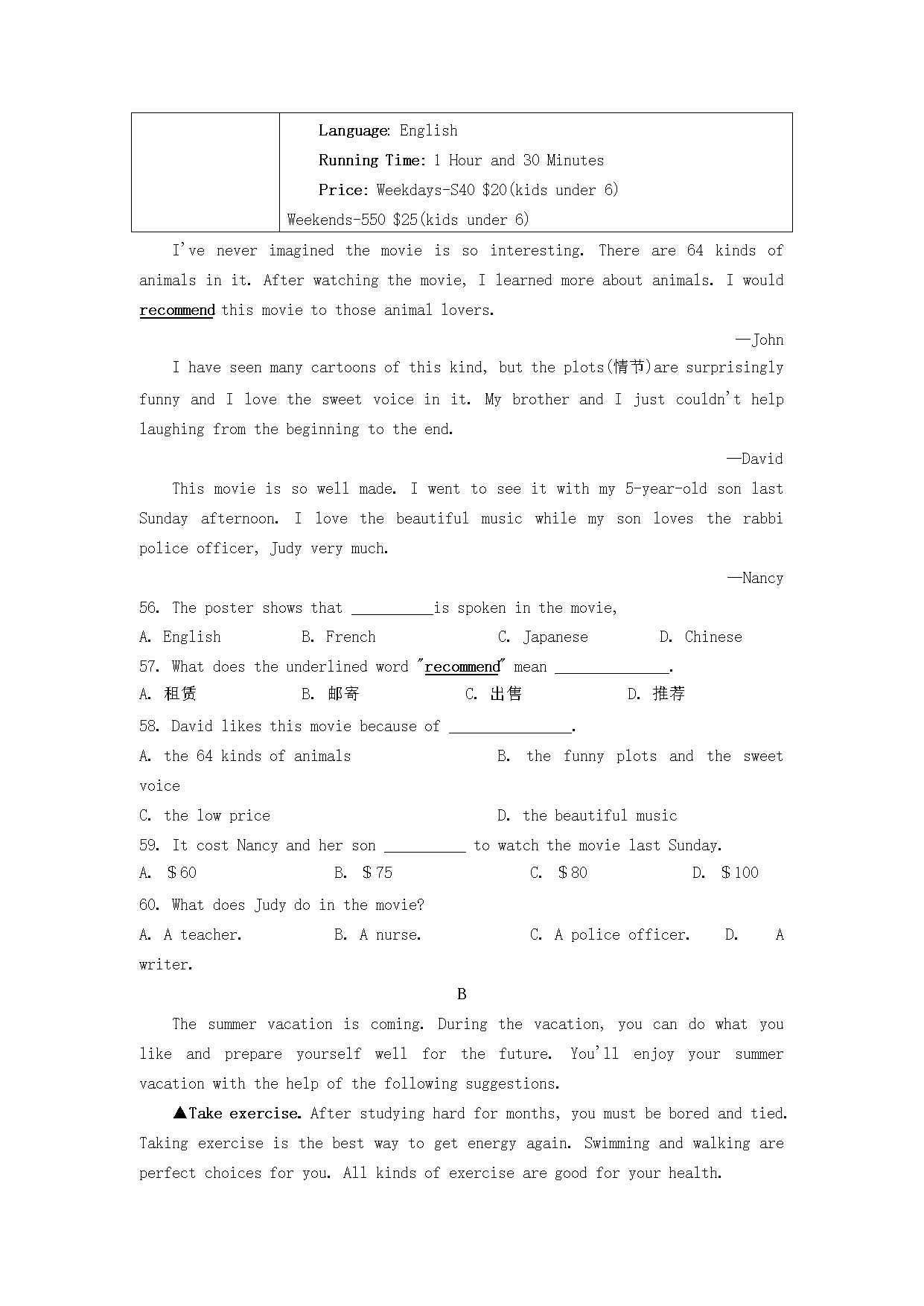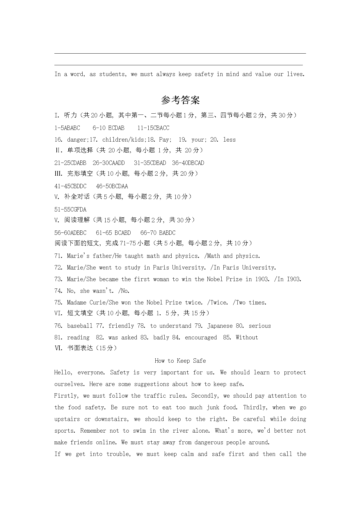 【文档预览】 无忧考网整理发布2020年贵州黔东南州中考英语真题及答案(Word版),前五页预览如下: