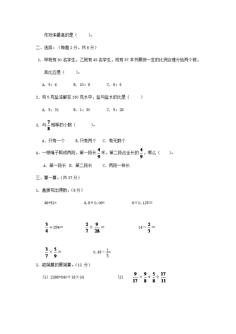 【文档预览】 无忧考网整理发布2018年吉林小升初数学真题及答案(Word版),前五页预览如下:
