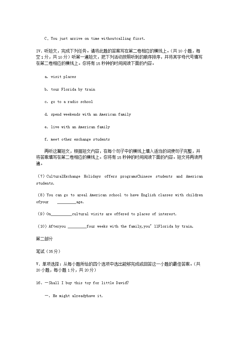 【文档名称】 2008山东青岛中学英语教师招聘考试真题及答案(Word版).doc
