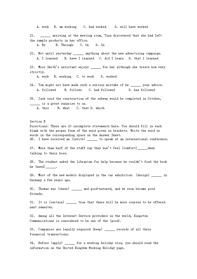 【文档名称】 2010年12月大学英语三级A真题及答案(Word版).doc