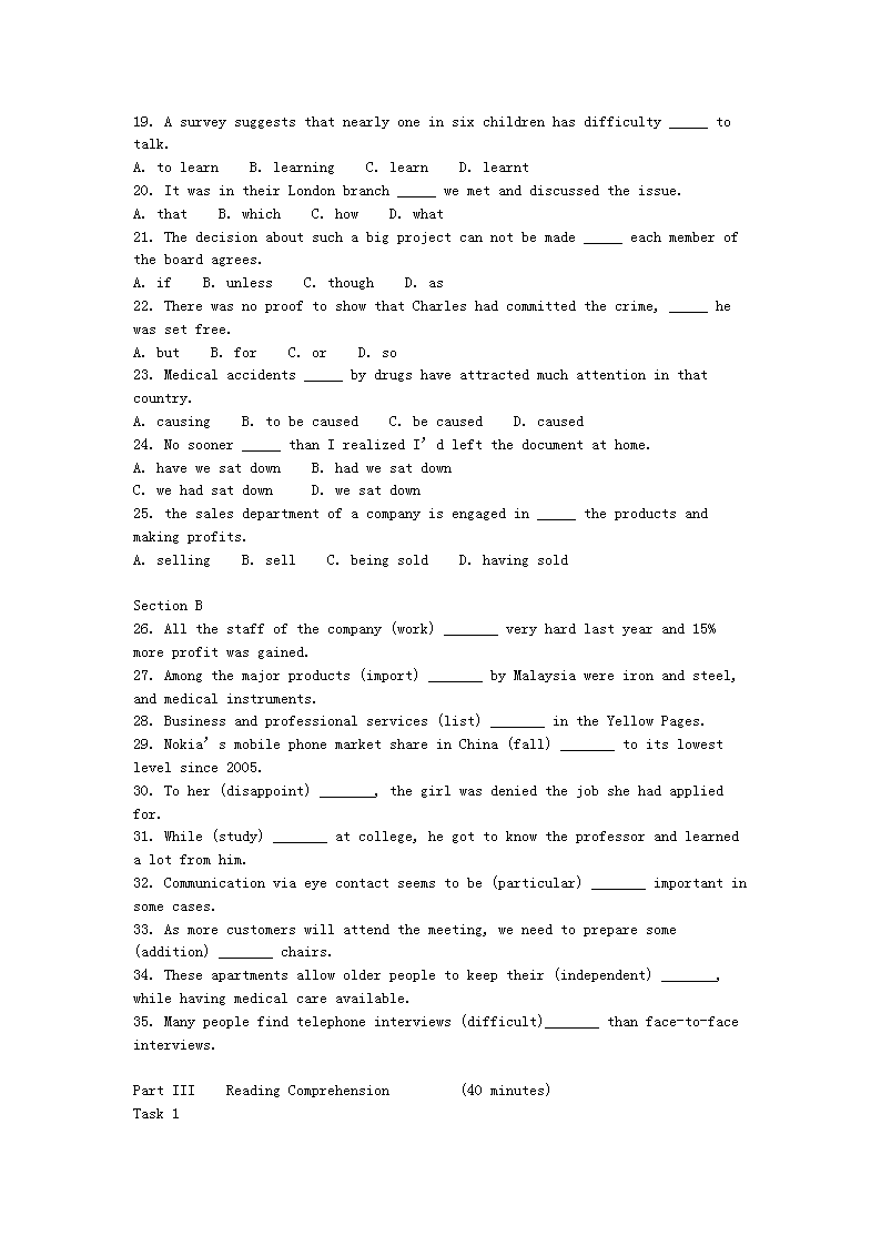 【文档预览】 无忧考网整理发布2012年12月大学英语三级A真题及答案(Word版),前五页预览如下: