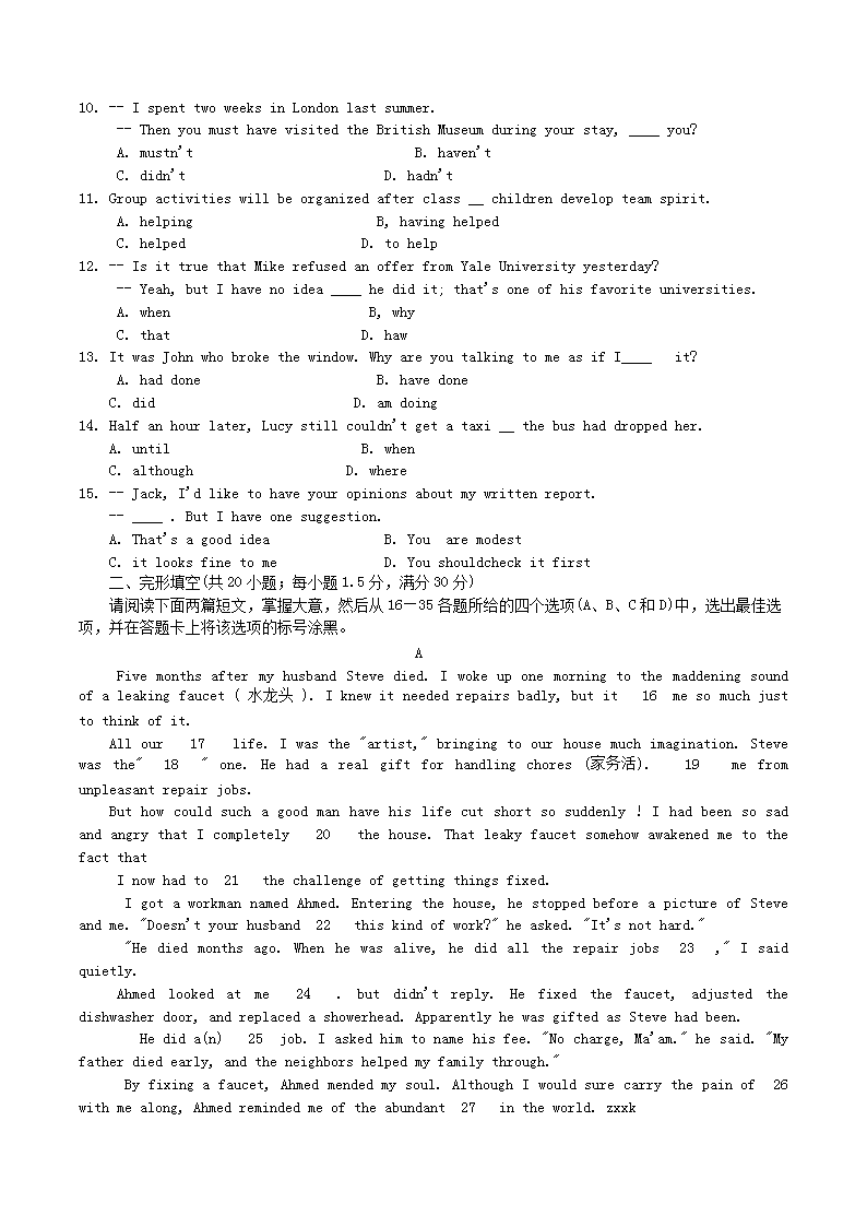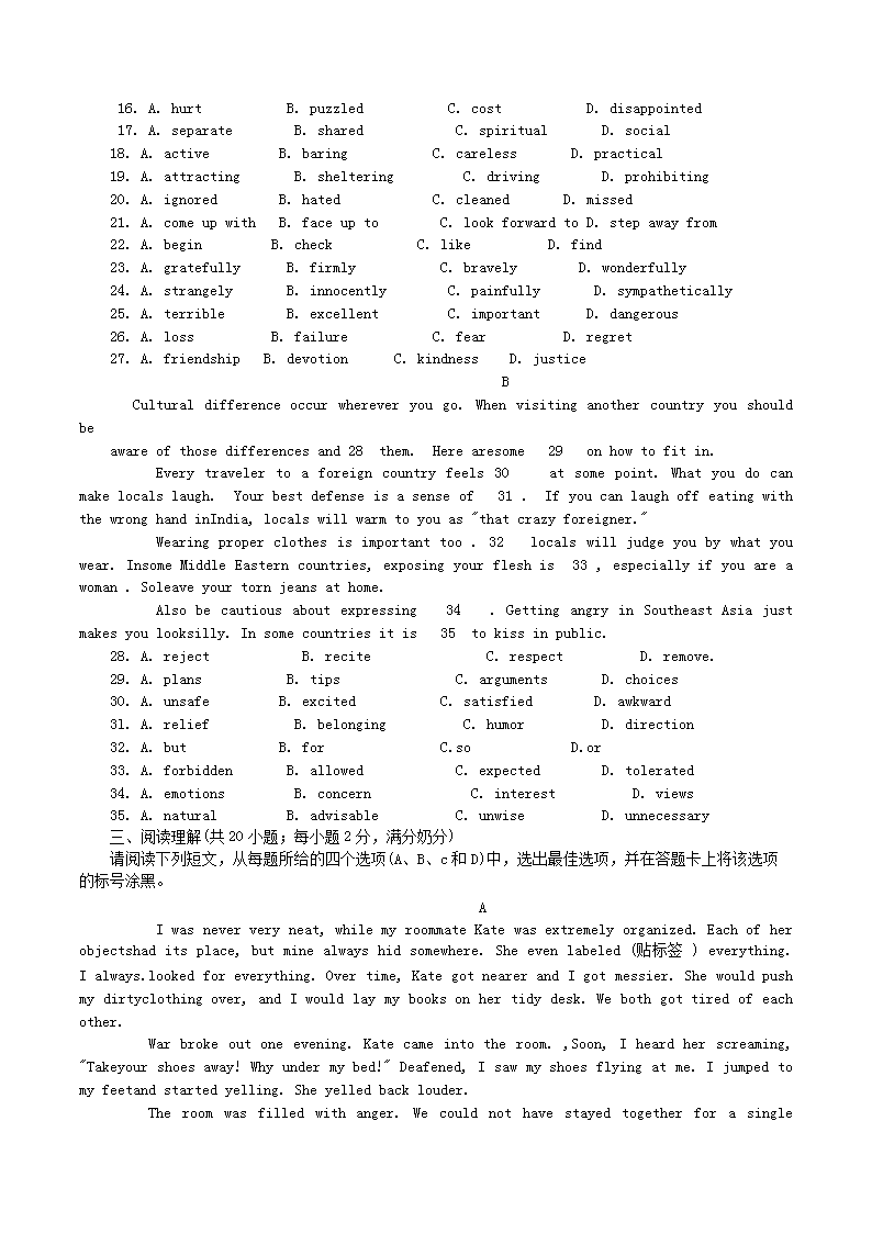 【文档名称】 2014年重庆高考英语真题及答案(Word版).doc