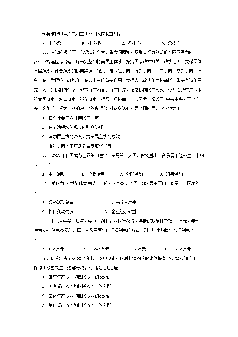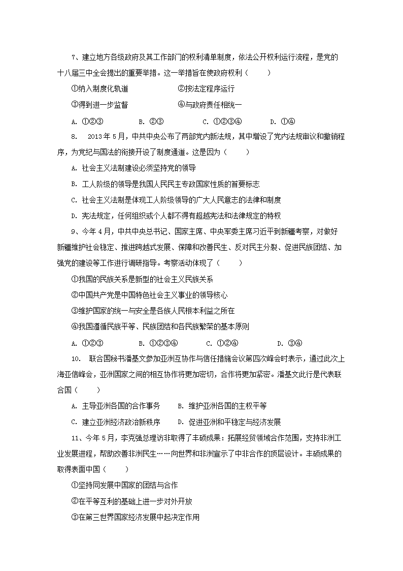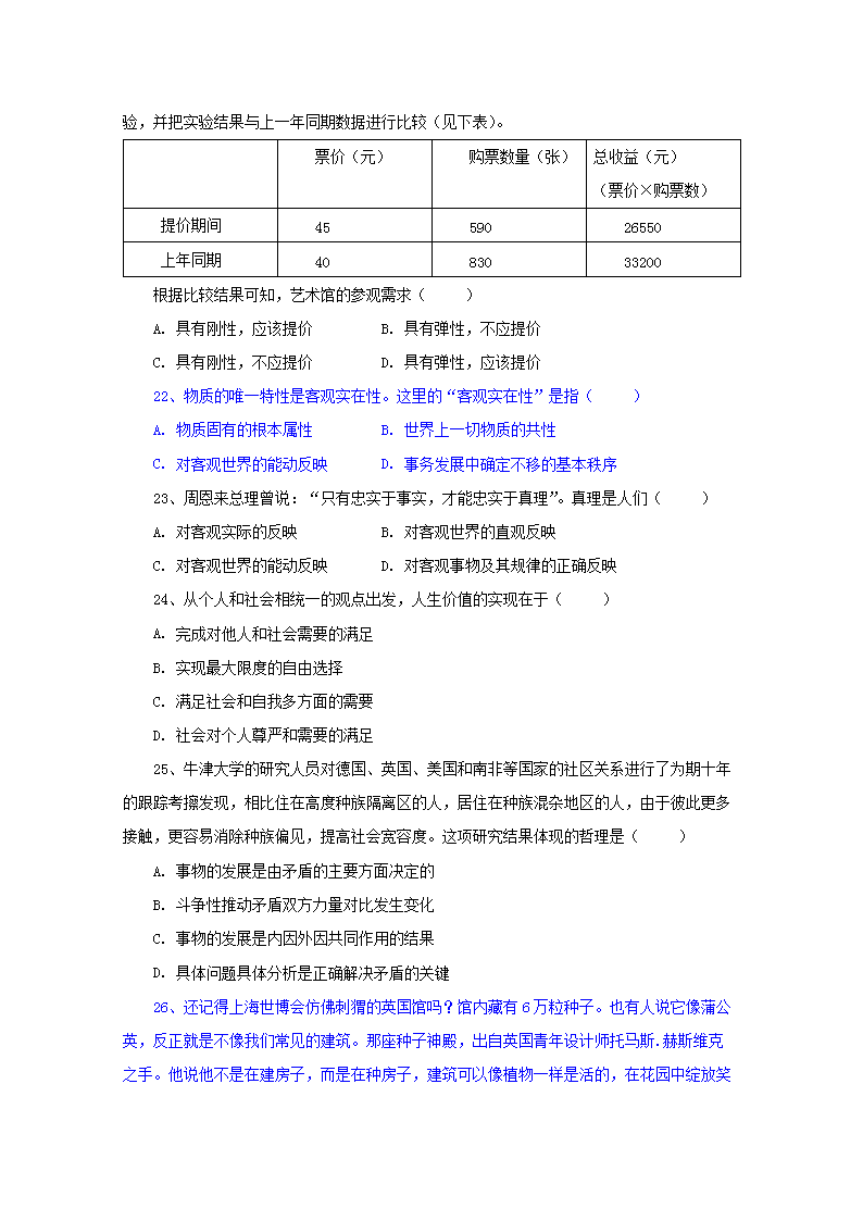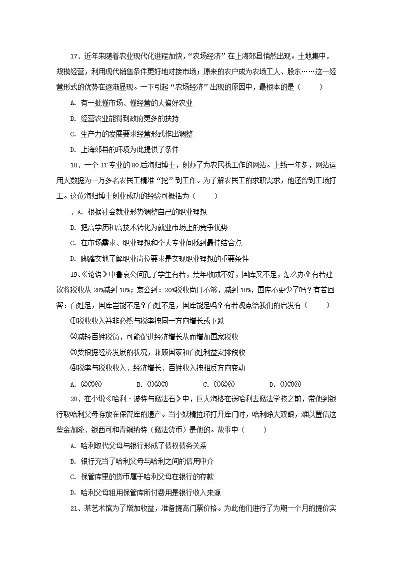 【文档名称】 2014年上海高考政治真题及答案(Word版).doc