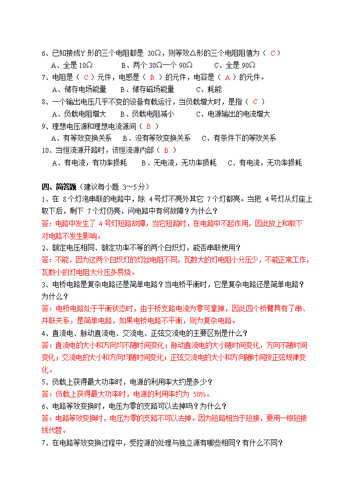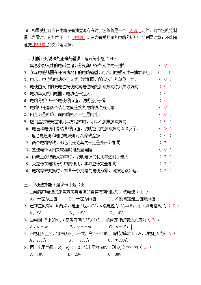 【文档名称】 国家电网考试电路题库(Word版).doc
