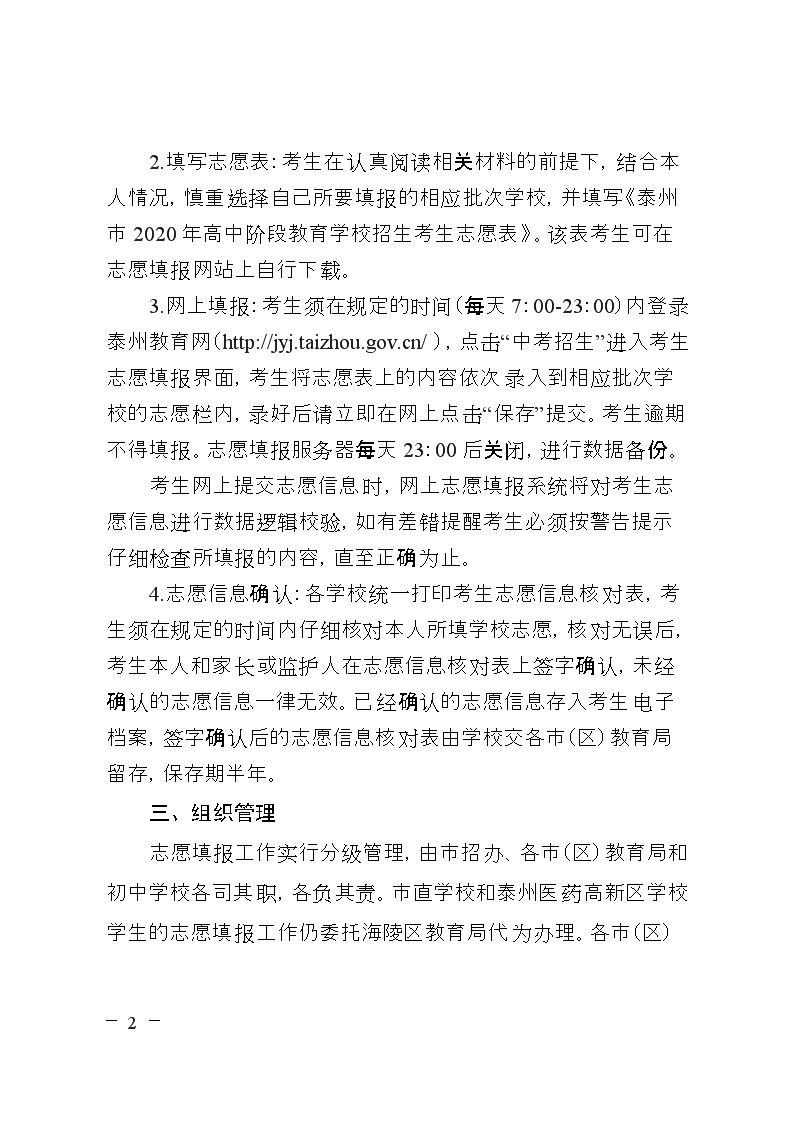 无忧考网从泰州市教育局了解到,关于做好2020年中考志愿填报工作的通知已发布,为方便考生了解相关志愿填报情况,现将有关事宜通知如下: