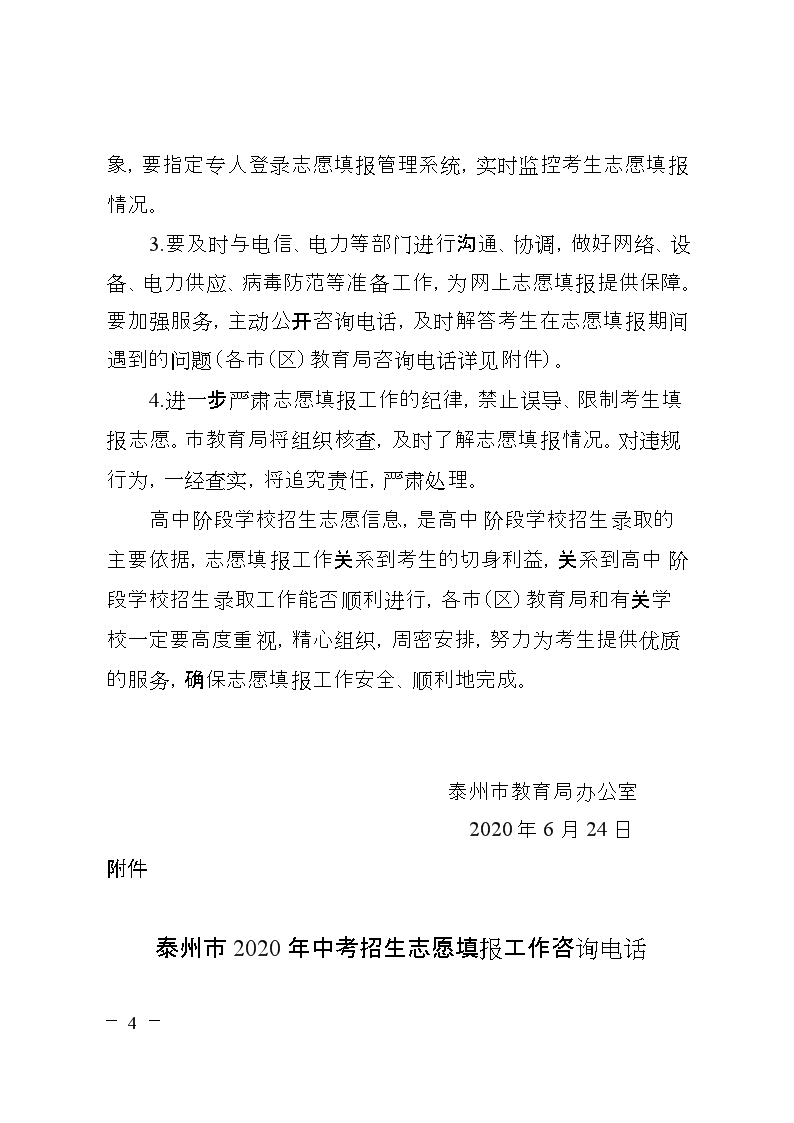 2020年江苏泰州中考志愿填报时间:6月30日-7月3日