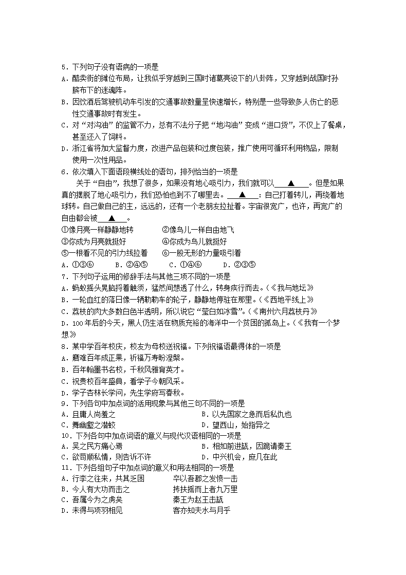 【文档名称】 2013年江西普通高中会考语文真题及答案(Word版).doc