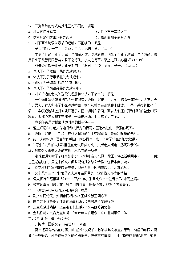 【文档预览】 无忧考网整理发布2013年江西普通高中会考语文真题及答案(Word版),前五页预览如下: