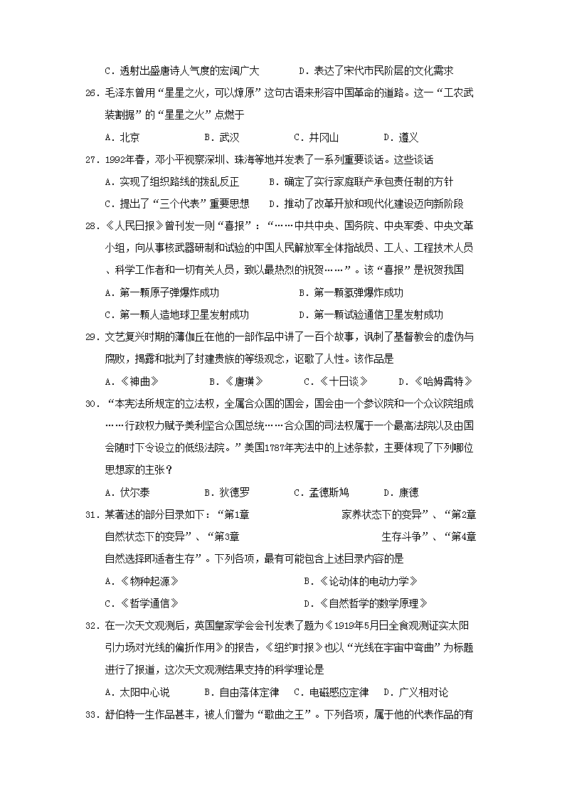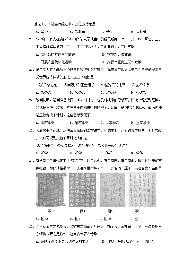 【文档名称】 2012年浙江普通高中会考历史真题及答案(Word版).doc