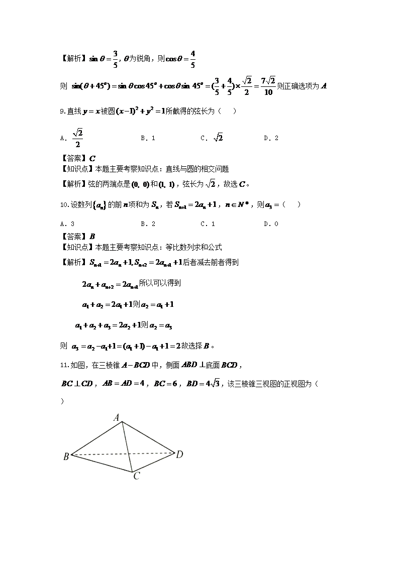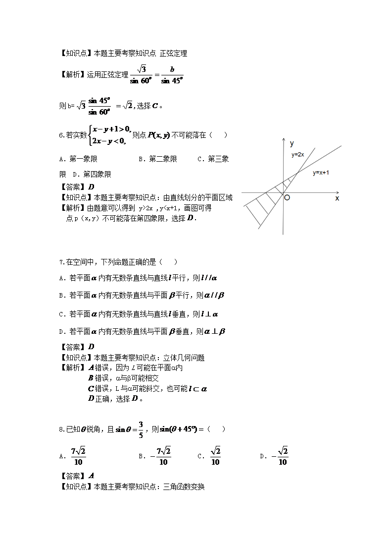 【文档名称】 2017年浙江普通高中会考数学真题及答案(Word版).doc