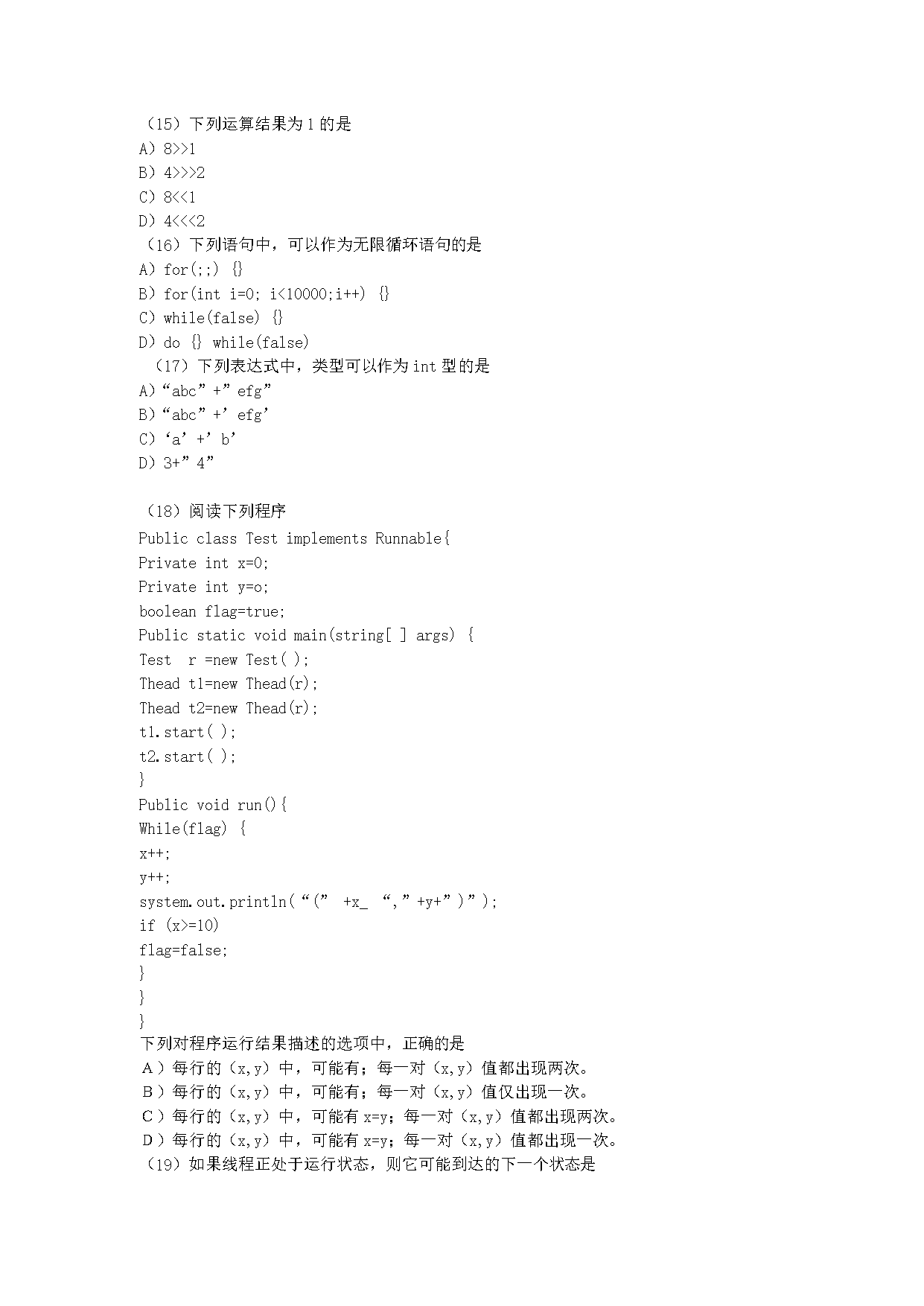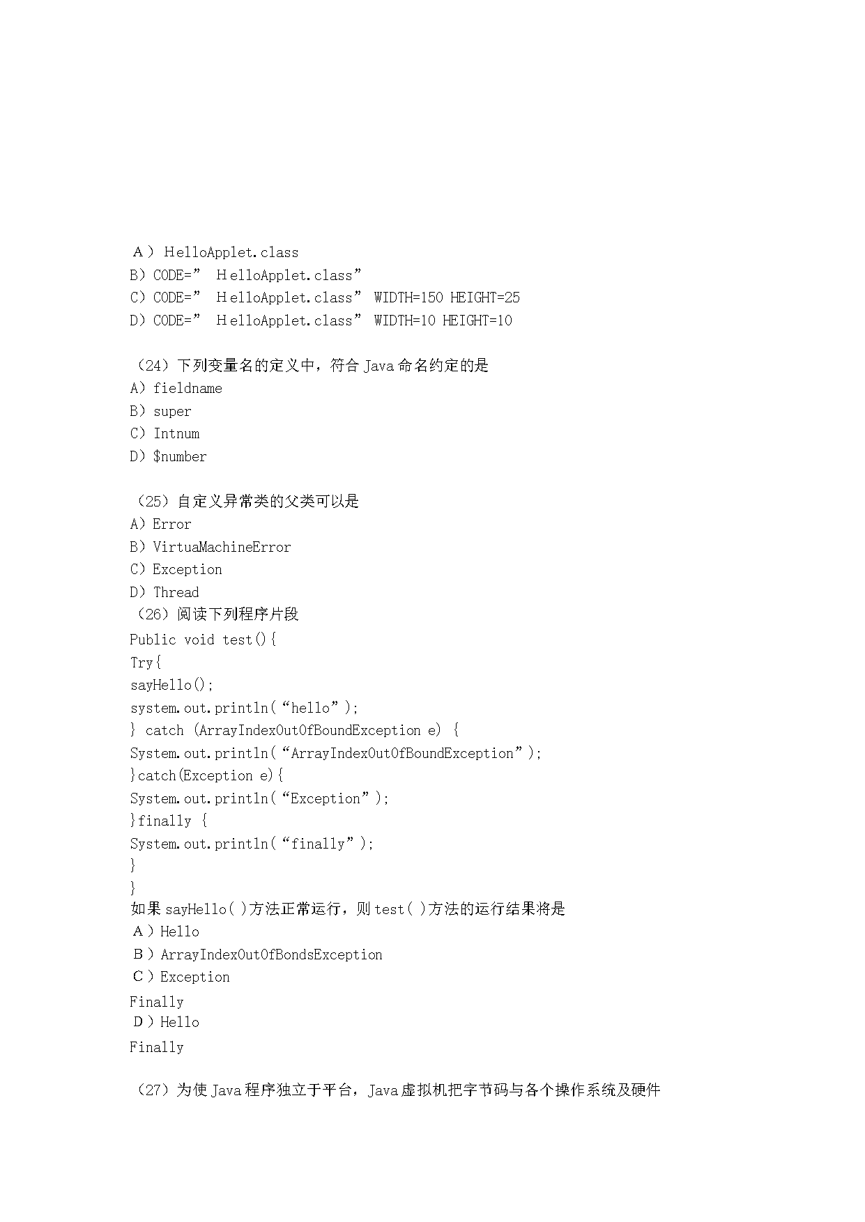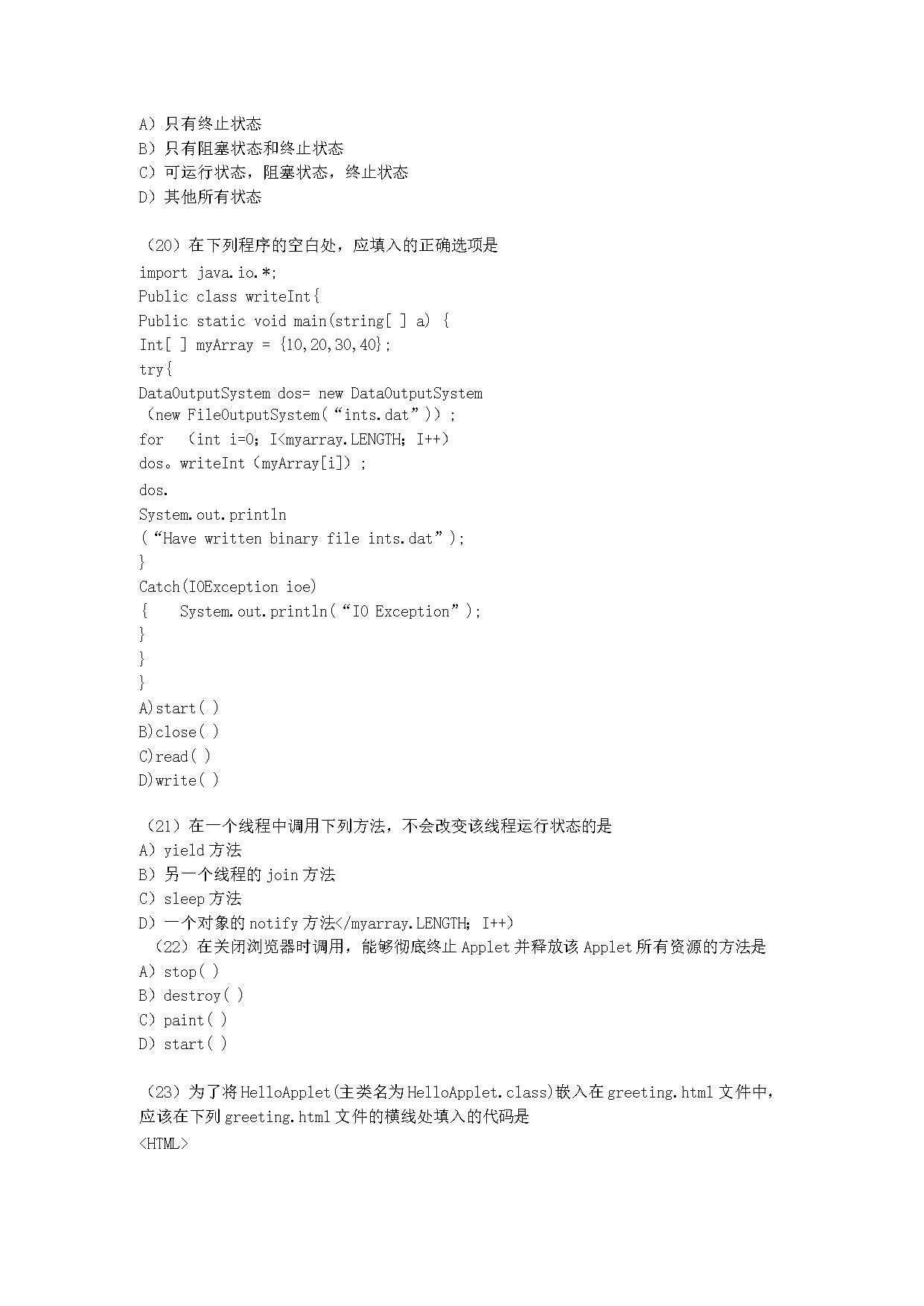 【文档名称】 2009年9月全国计算机二级Java考试真题及答案(Word版).doc