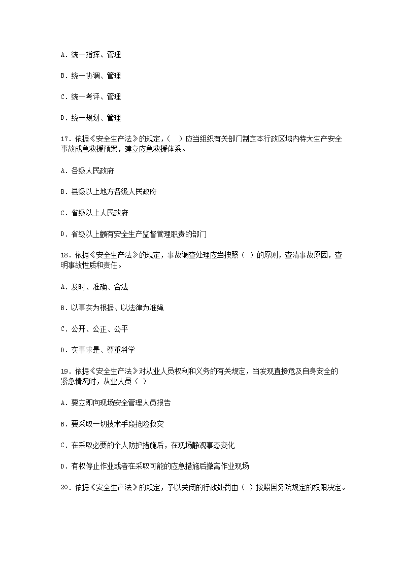 【文档预览】 无忧考网整理发布2006年安全工程师执业资格考试真题及答案(Word版),前五页预览如下: