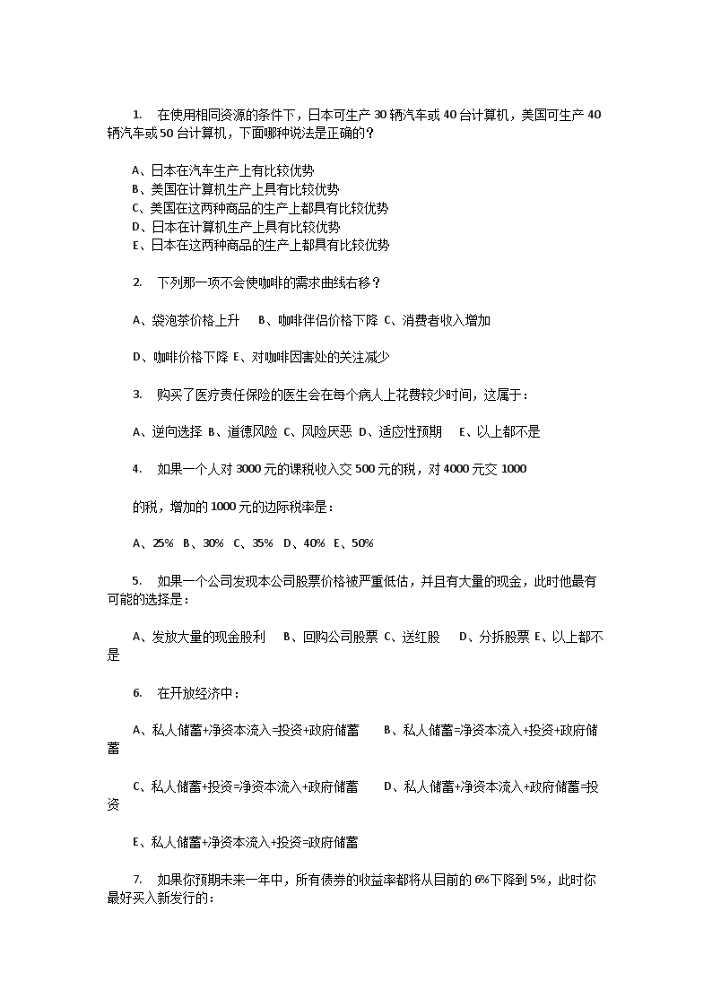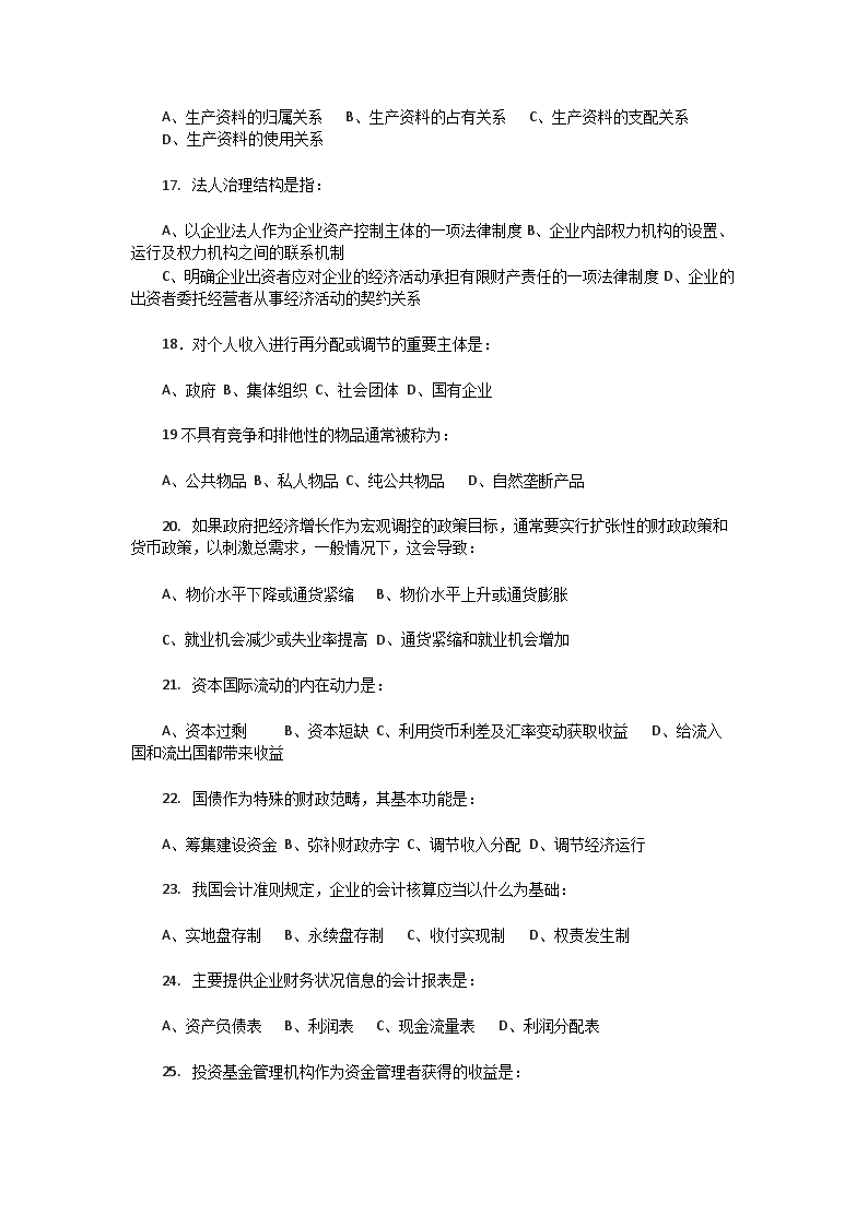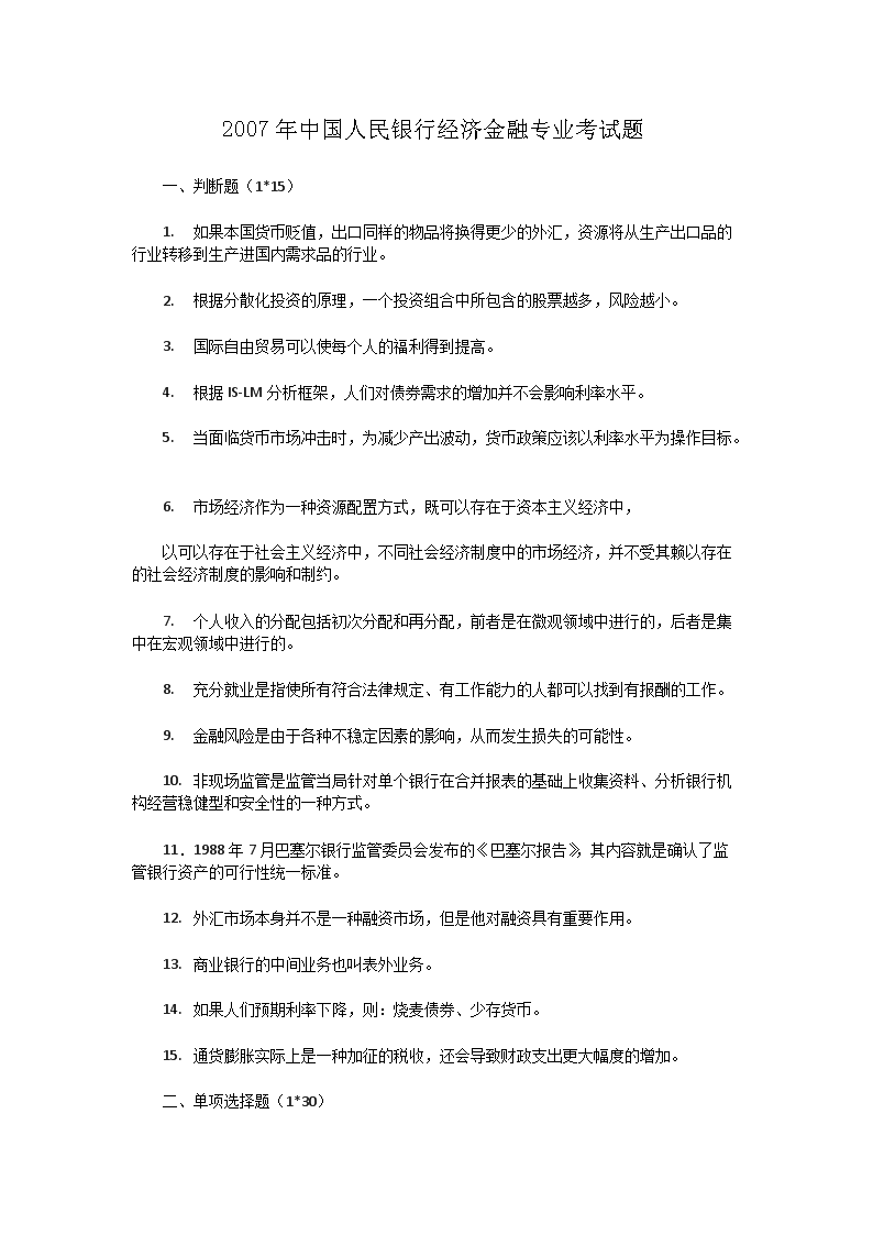 【文档名称】 2007年中国人民银行经济金融专业考试题(Word版).doc