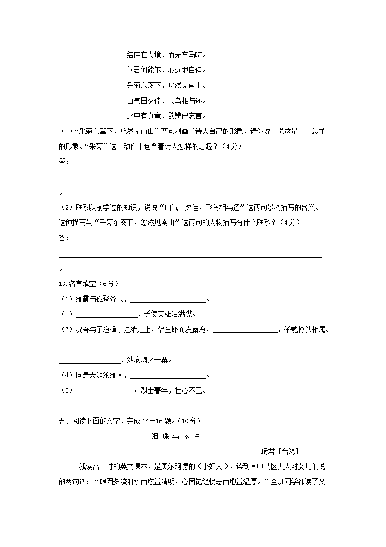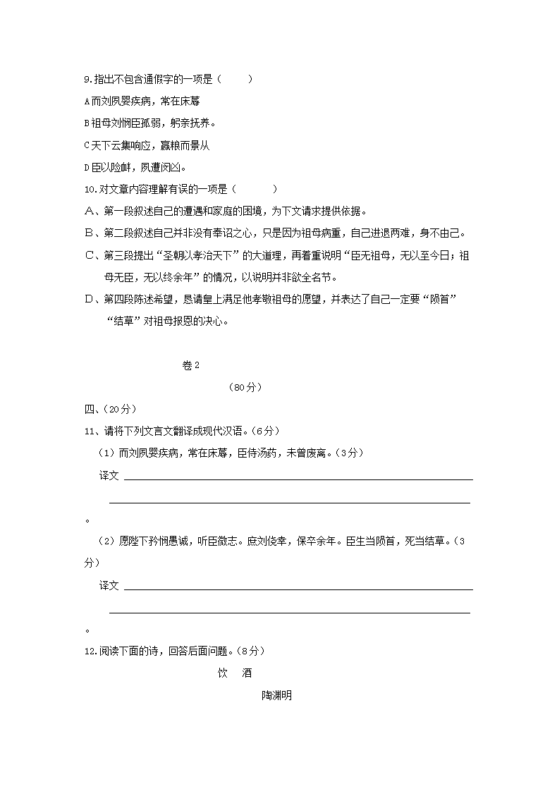 【文档名称】 2014年四川高中会考语文真题及答案(Word版).doc