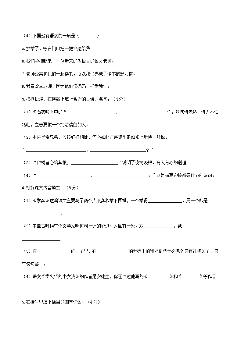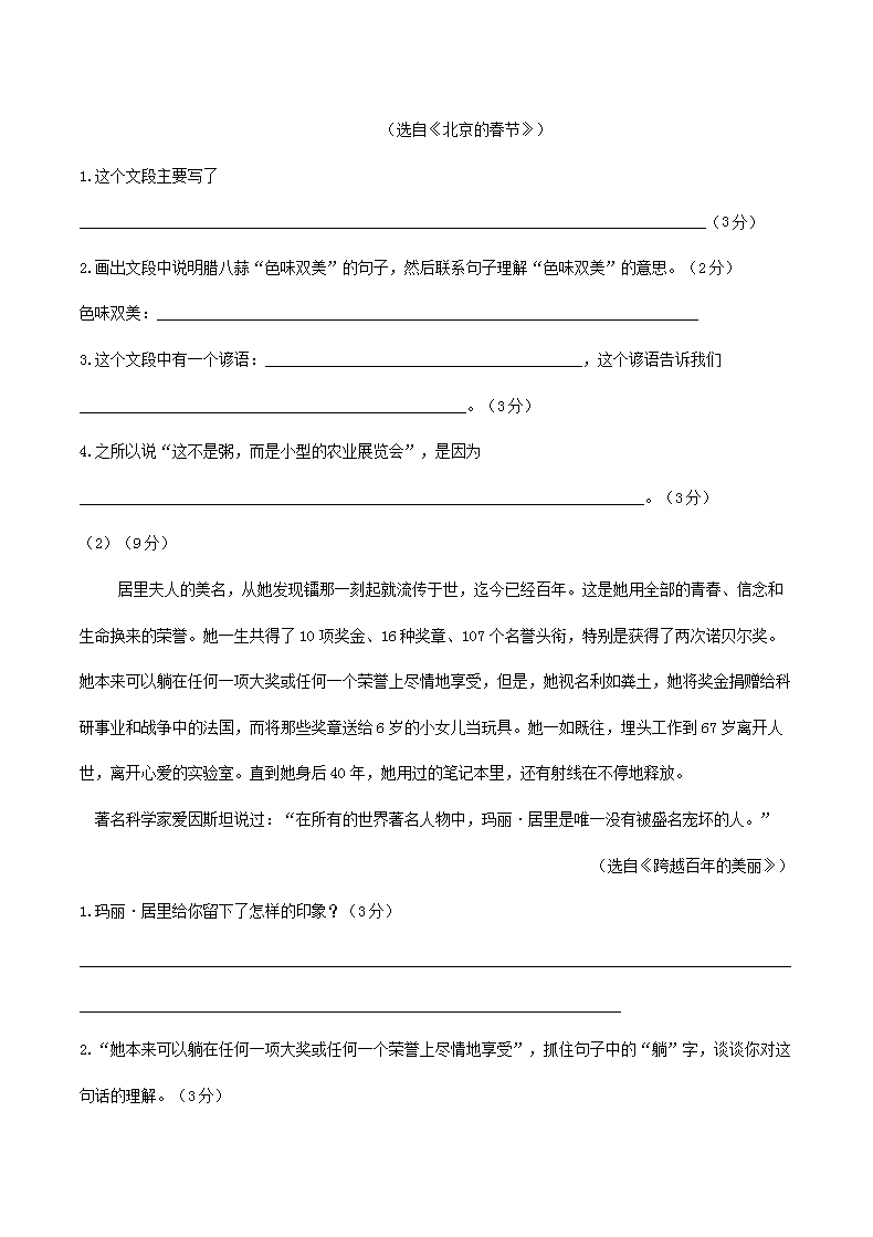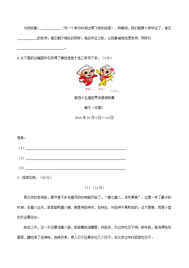 【文档名称】 2014年广西南宁小升初语文真题(Word版).doc
