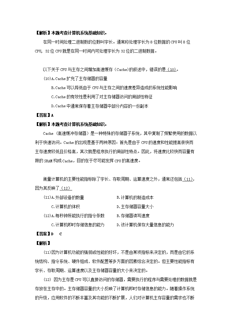 【文档名称】 2010上半年程序员考试真题及答案-上午卷(Word版).doc