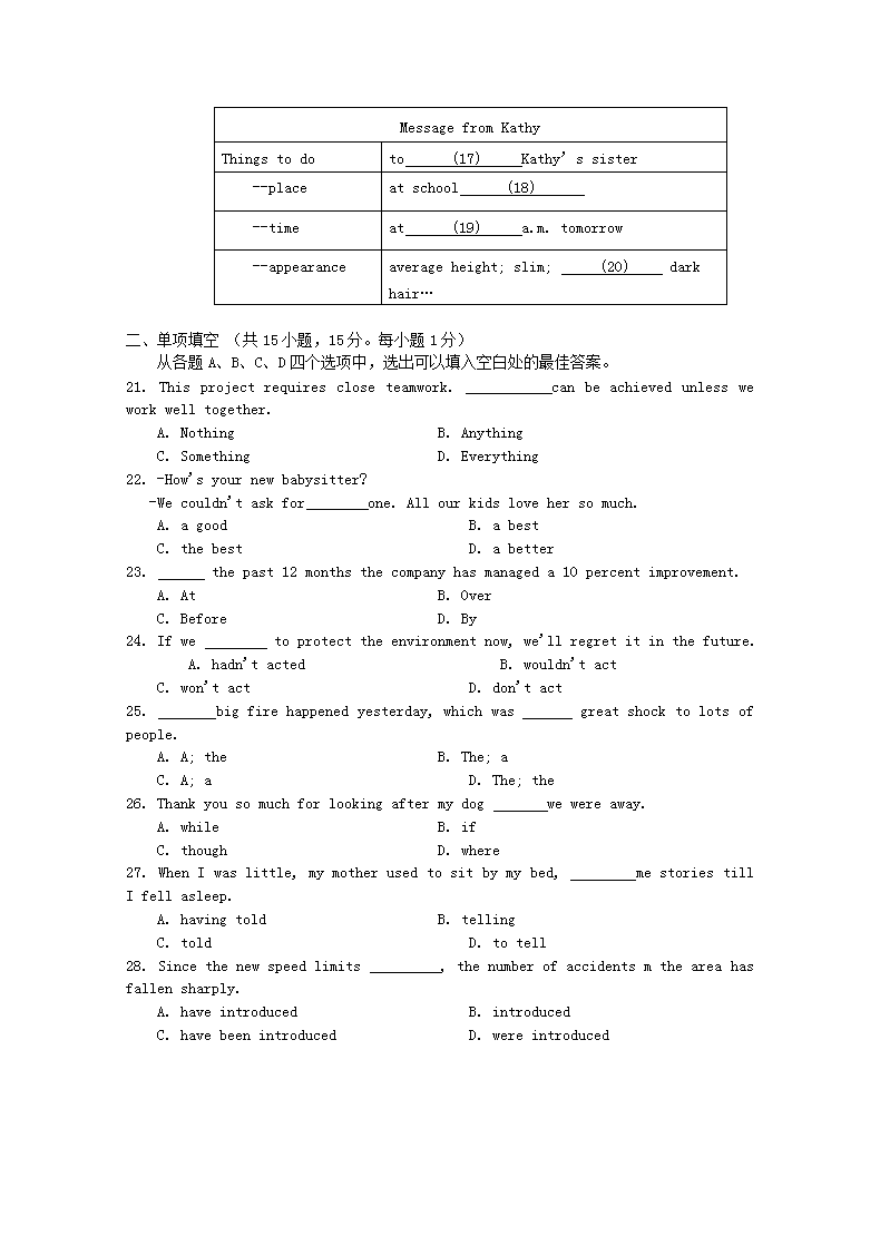 【文档预览】 无忧考网整理发布2015年北京普通高中会考英语真题及答案(Word版),前五页预览如下: