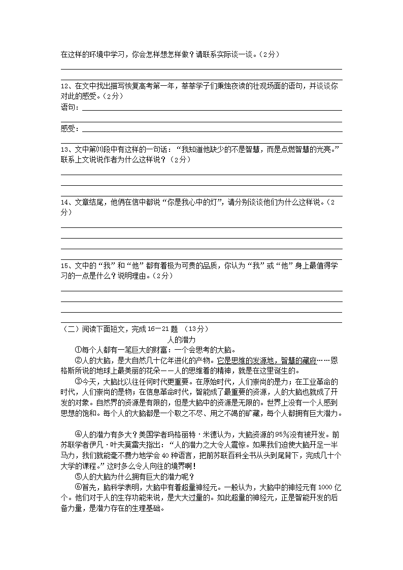 【文档预览】 无忧考网整理发布2007年河南郑州中原区初中语文教师招聘考试真题及答案B卷(Word版),前五页预览如下: