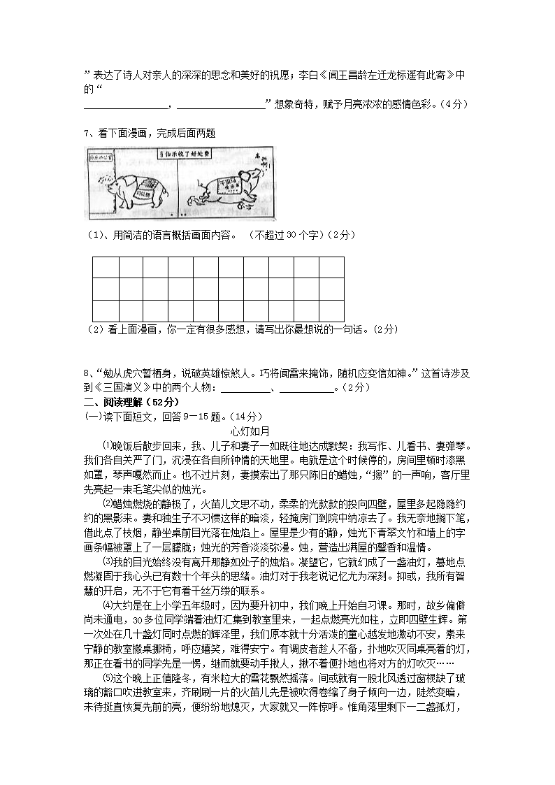 【文档名称】 2011年河南郑州中原区初中语文教师招聘考试真题及答案B卷(Word版).doc