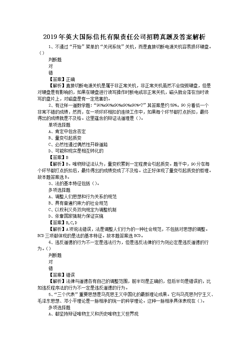 【文档名称】 2019年英大国际信托有限责任公司招聘真题及答案解析(Word版).doc