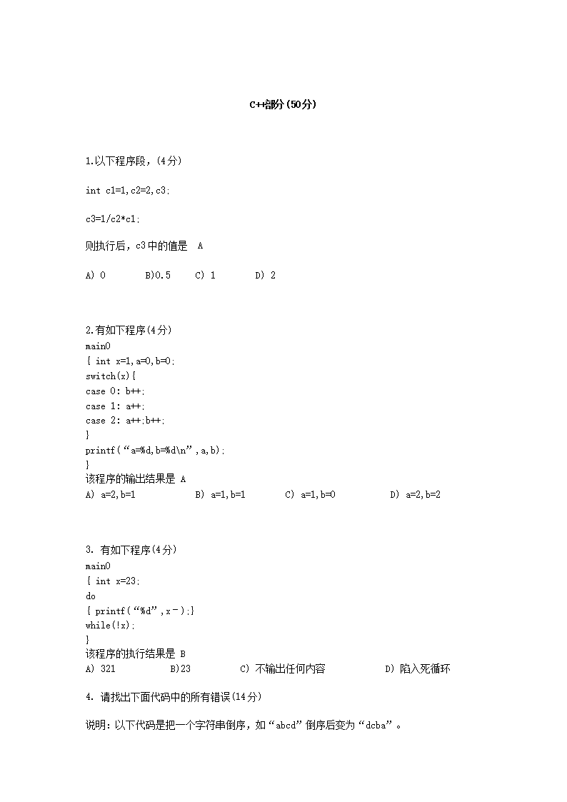 【文档名称】 中兴公司招聘计算机专业应届生笔试试卷第五套(Word版).doc