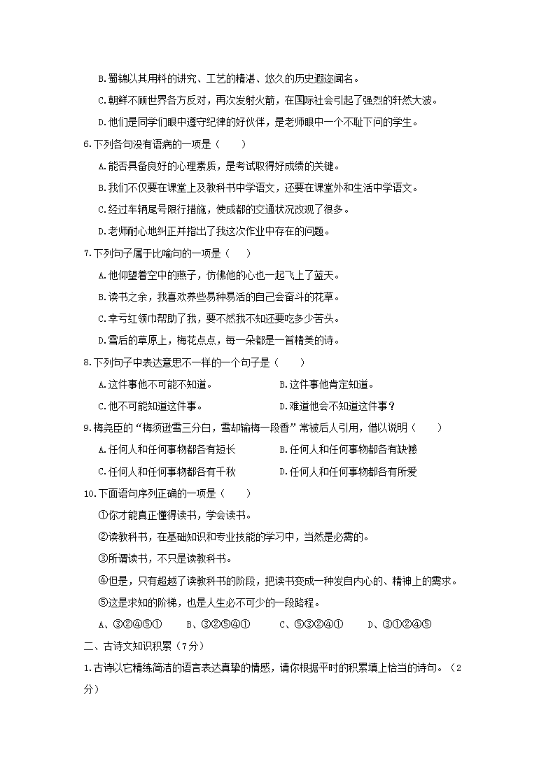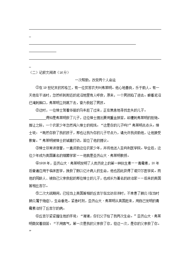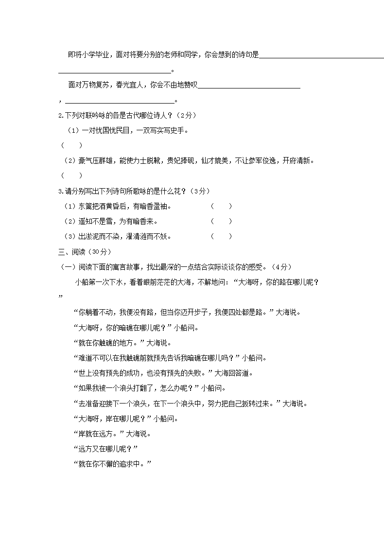 【文档名称】 2012年湖北武汉外国语学校小升初语文真题及答案(Word版).doc