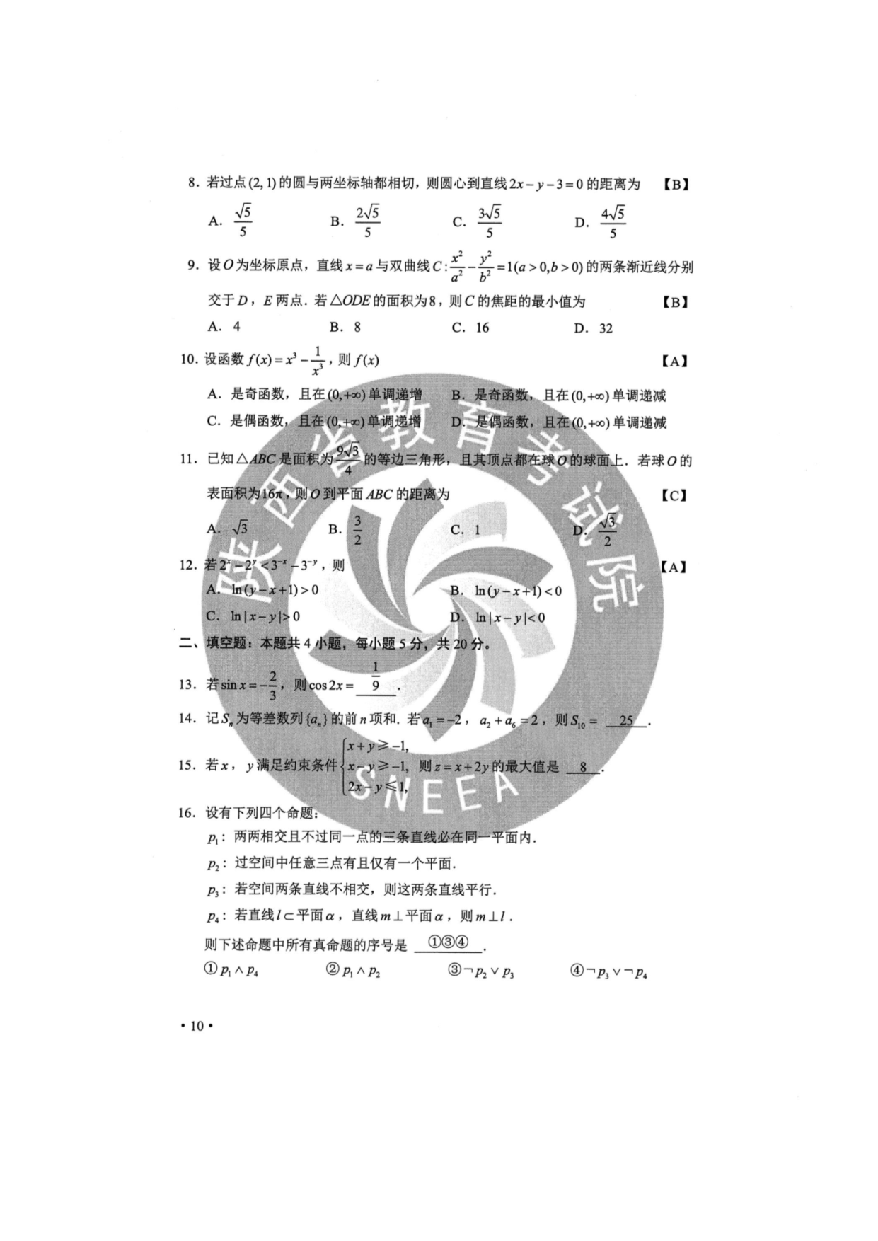 【文档名称】 2020年重庆高考文科数学试题真题及答案(图片版).doc