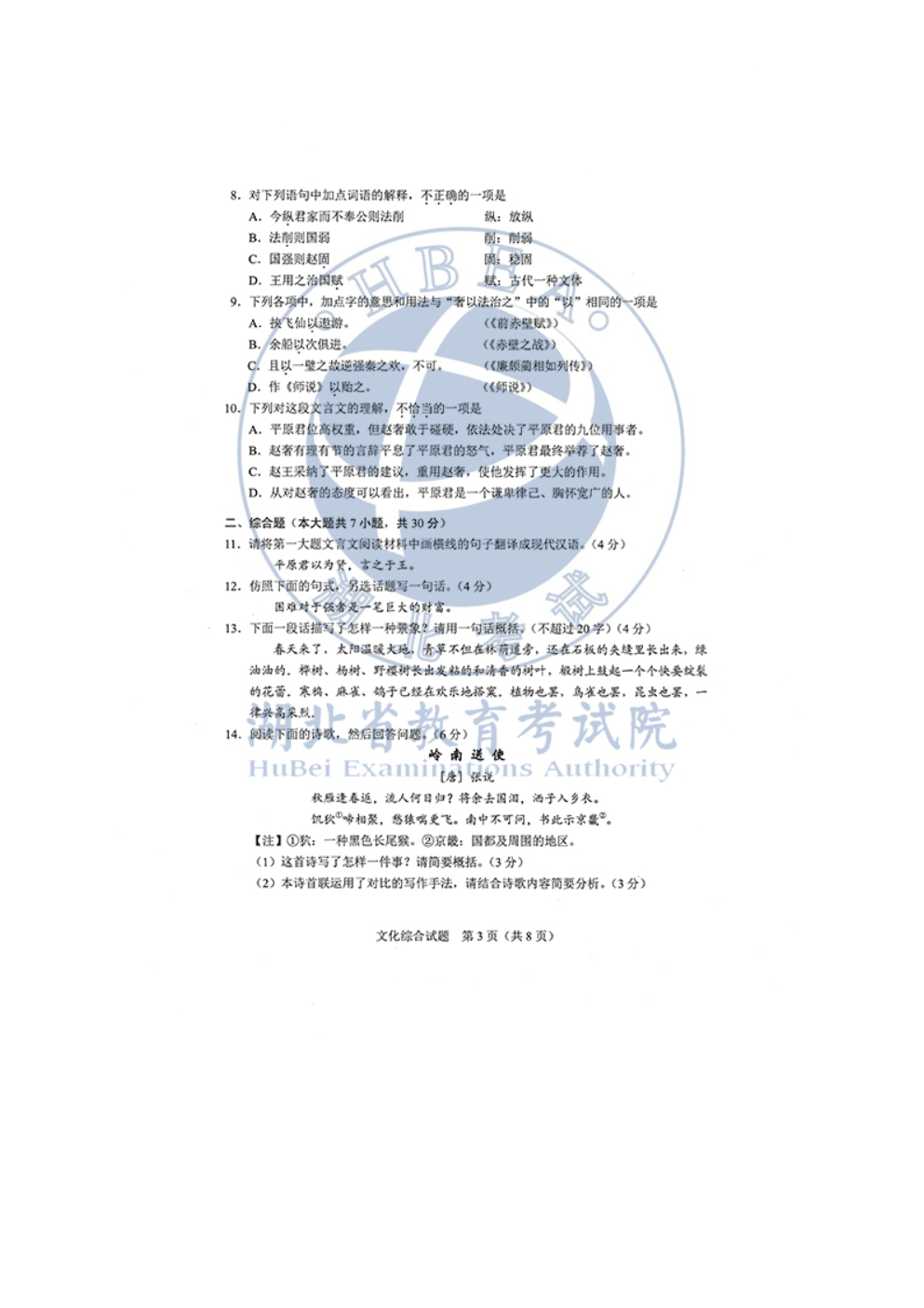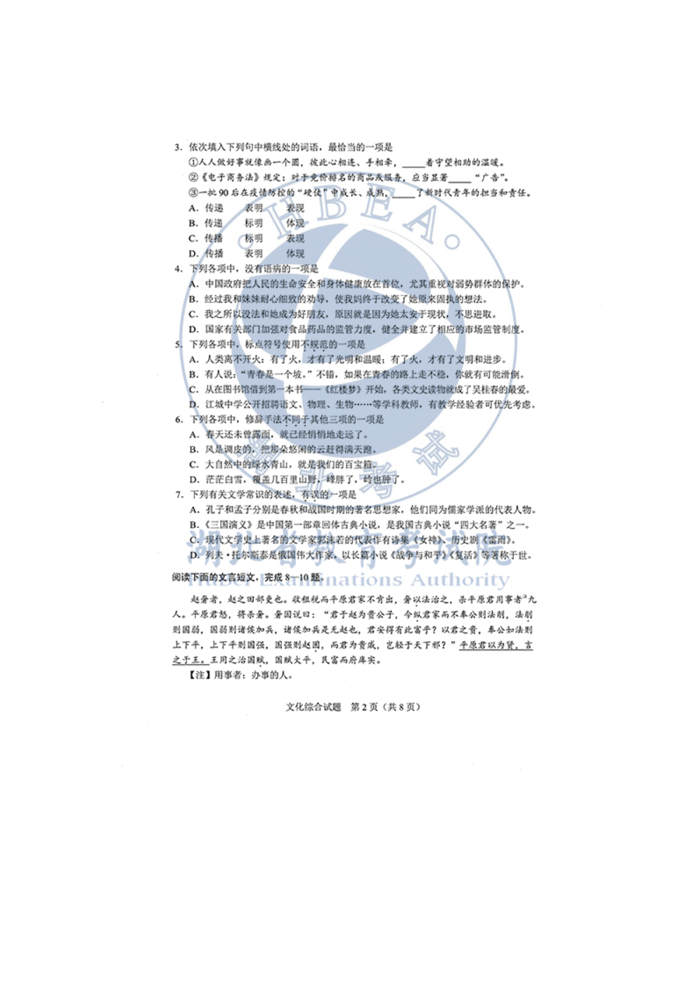 【文档预览】 无忧考网整理发布2020年安徽技能高考文化综合试题真题及答案(图片版),前五页预览如下: