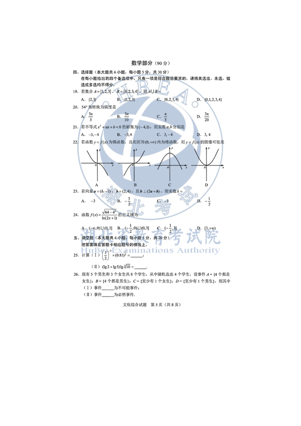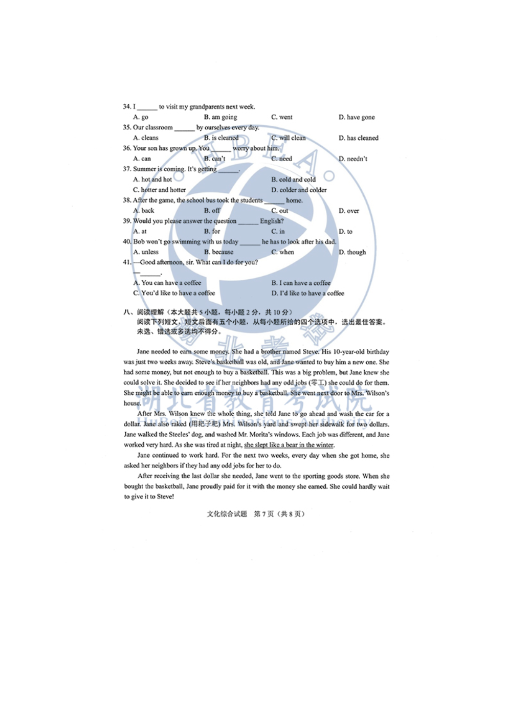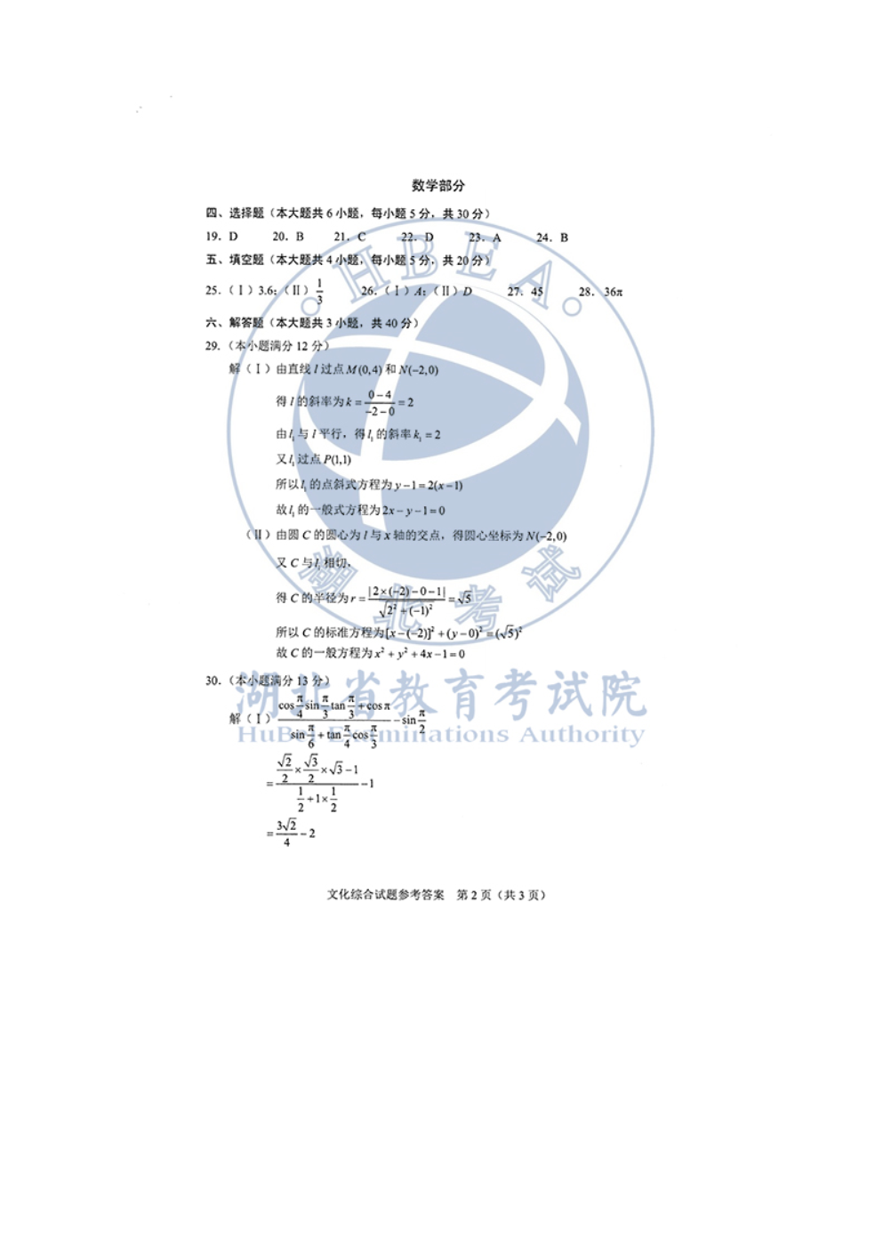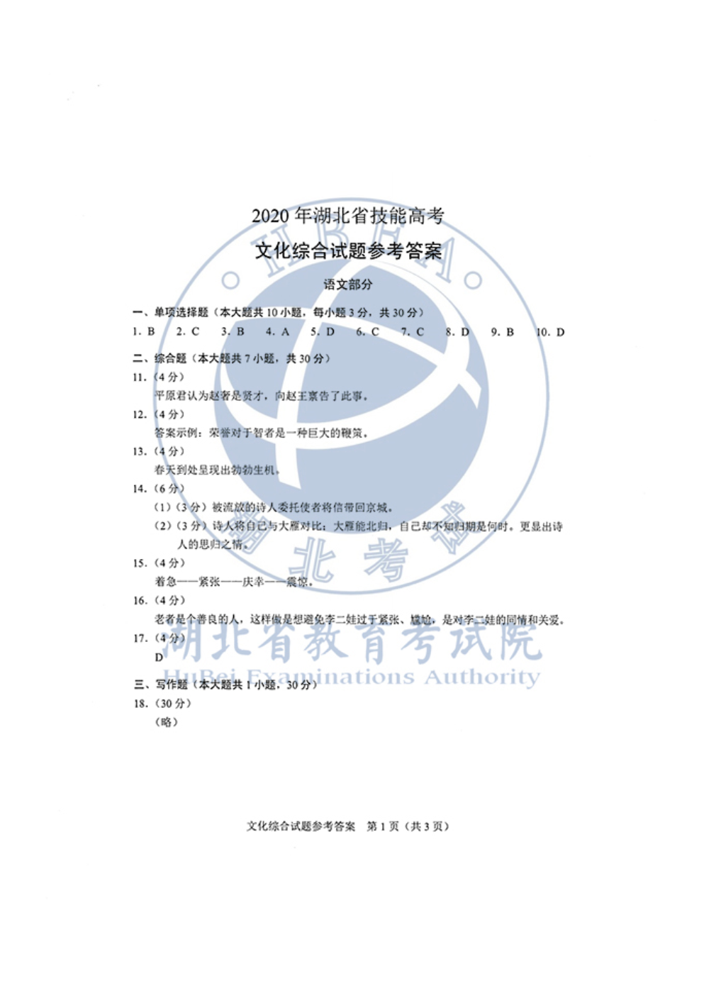【文档名称】 2020年安徽技能高考文化综合试题真题及答案(图片版).doc