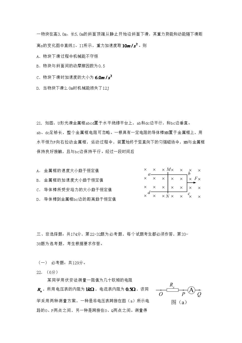 【文档名称】 2020年安徽高考理综试题真题及答案(Word版).doc
