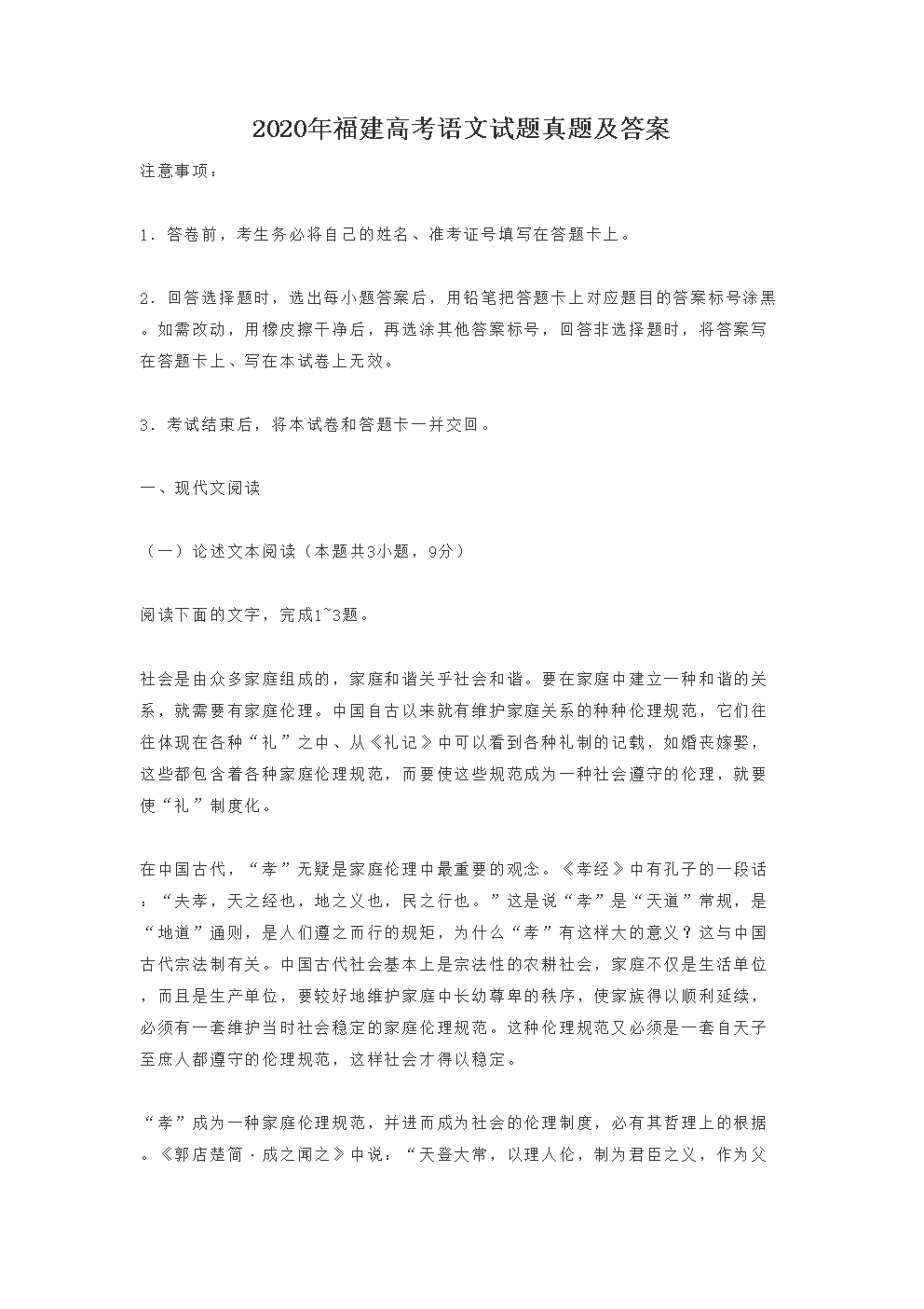 【文档名称】 2020年福建高考语文试题真题及答案(Word版).doc