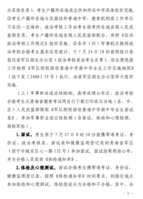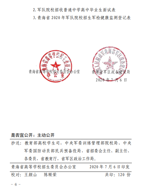 考网从青海省教育考试网了解到,关于2020年青海军队院校招收普通高中毕业生工作有关事宜的通知已发布,为方便考生了解情况,现将有关事宜通知如下: