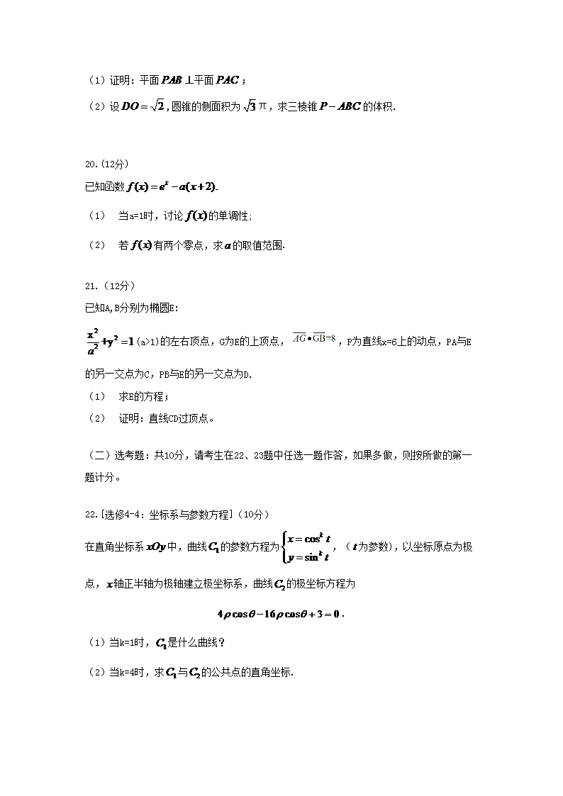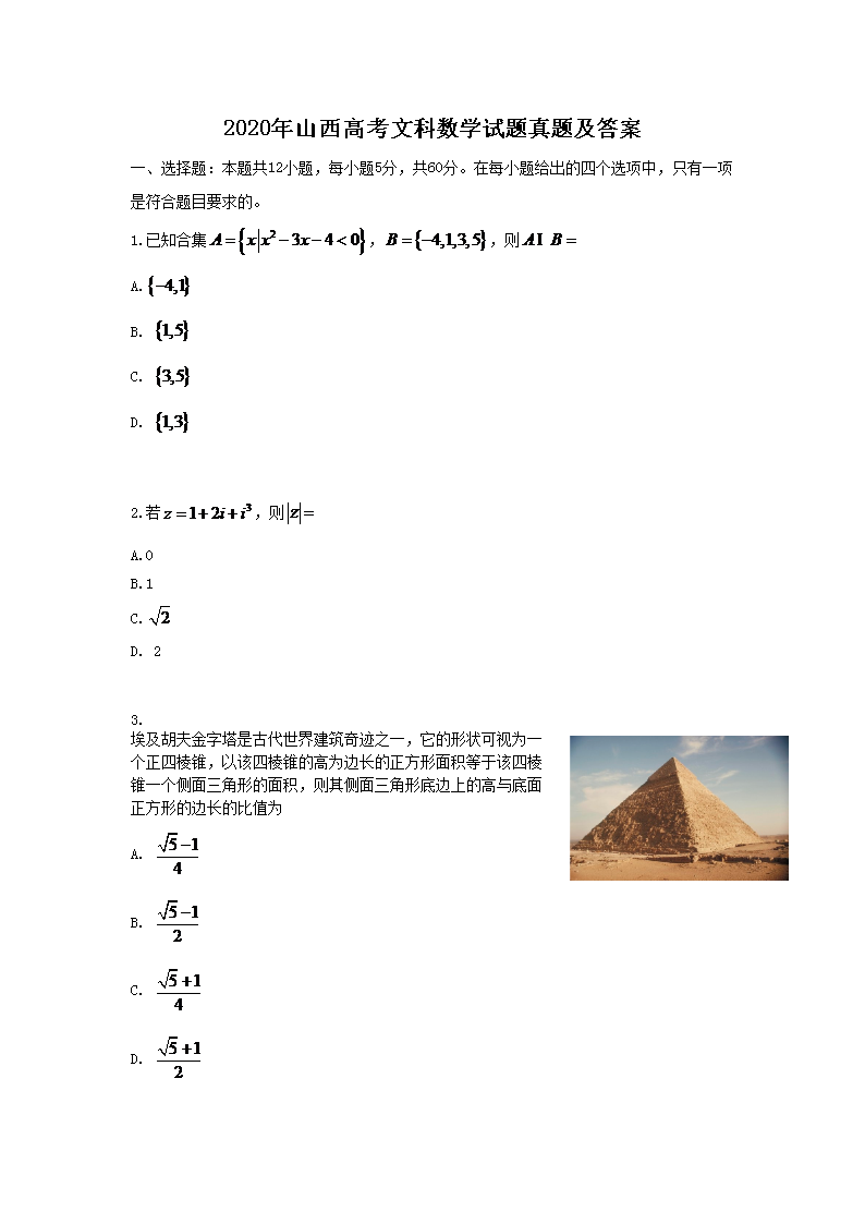 【文档名称】 2020年山西高考文科数学试题真题及答案(Word版).doc