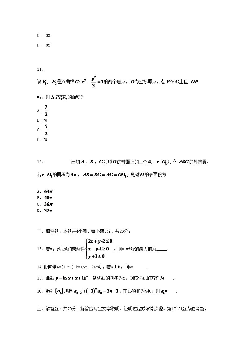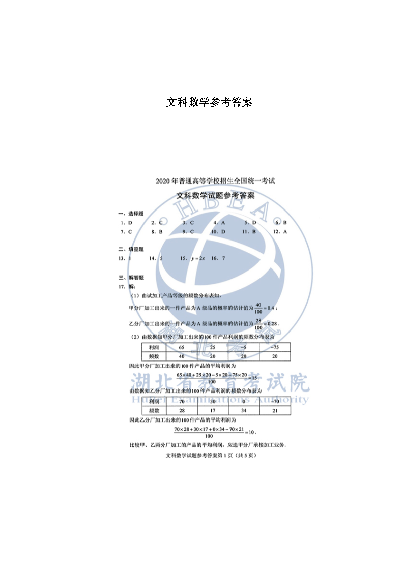 【文档预览】 无忧考网整理发布2020年山西高考文科数学试题真题及答案(Word版),前五页预览如下: