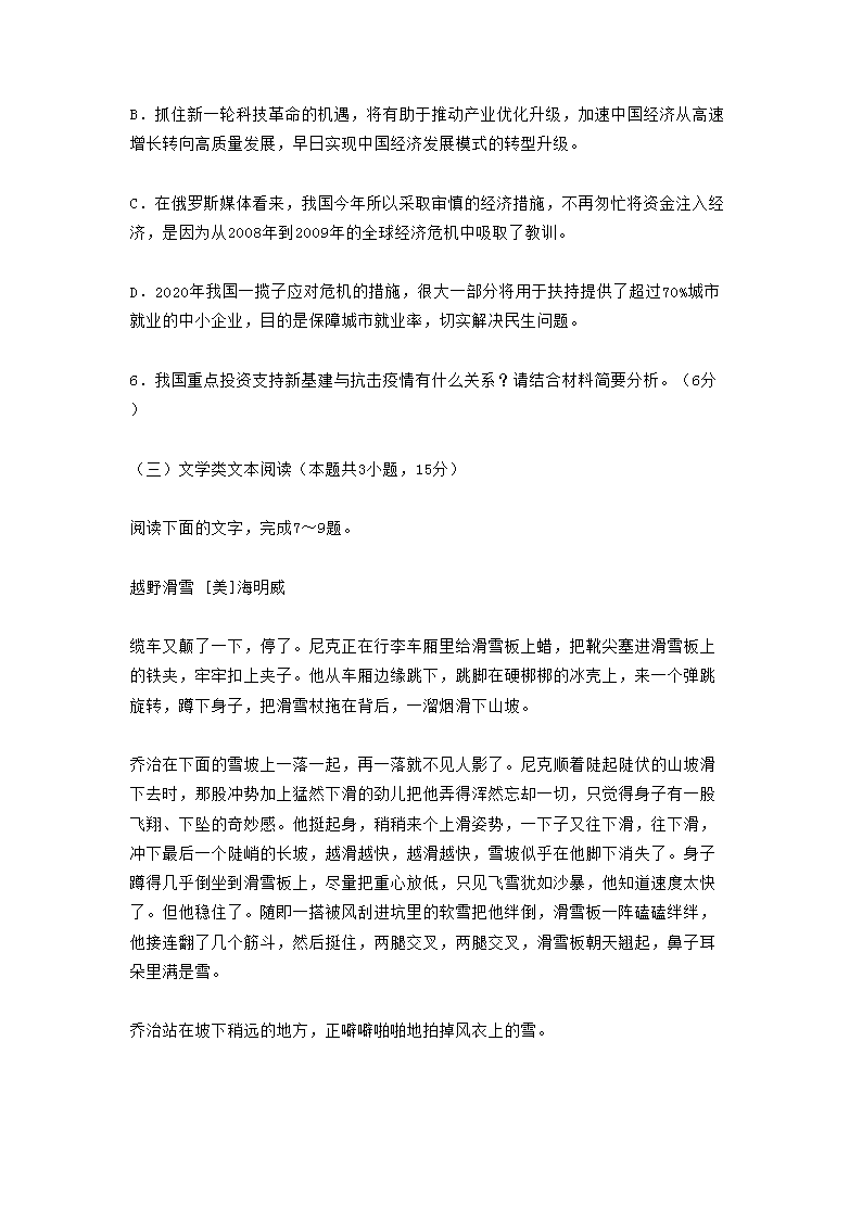 【文档名称】 2020年山西高考语文试题真题及答案(Word版).doc