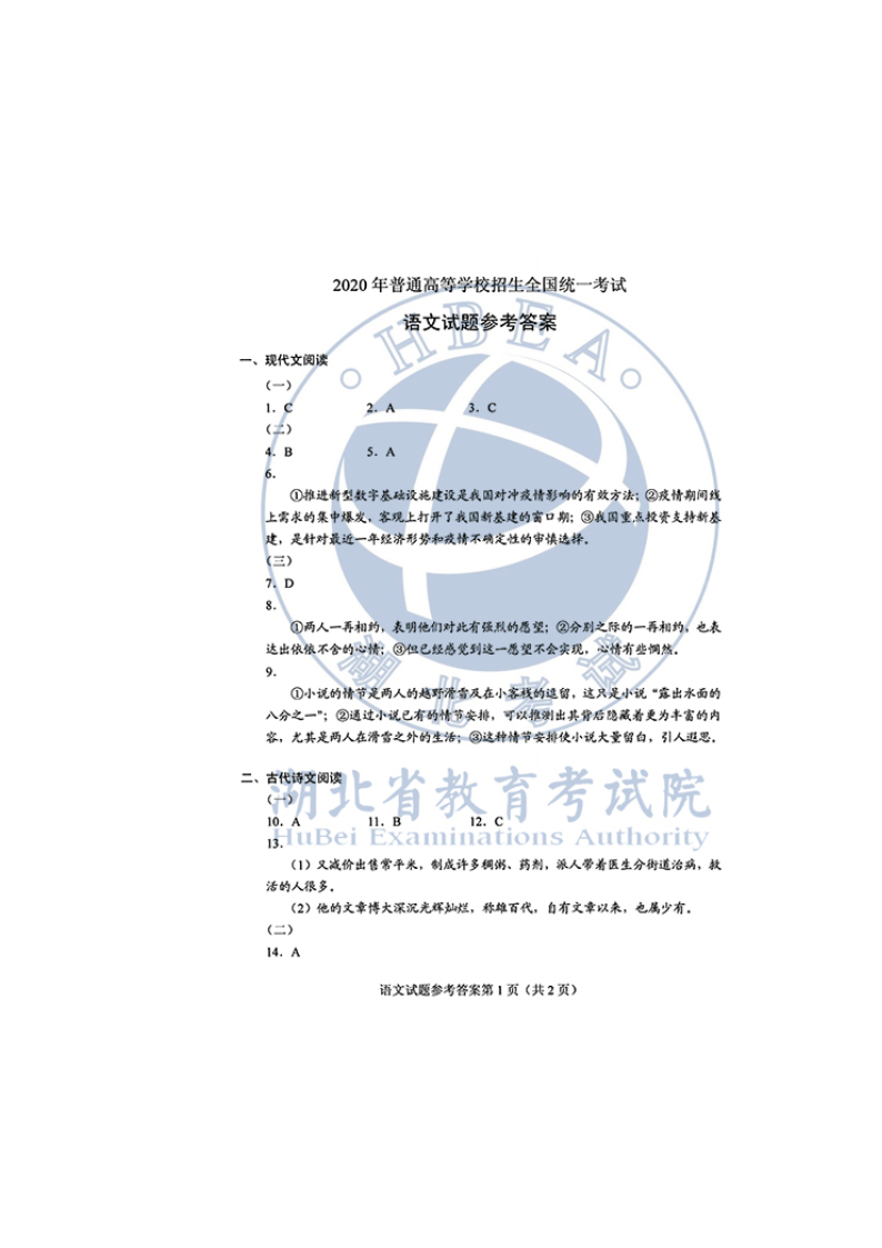 【文档预览】 无忧考网整理发布2020年山西高考语文试题真题及答案(Word版),前五页预览如下: