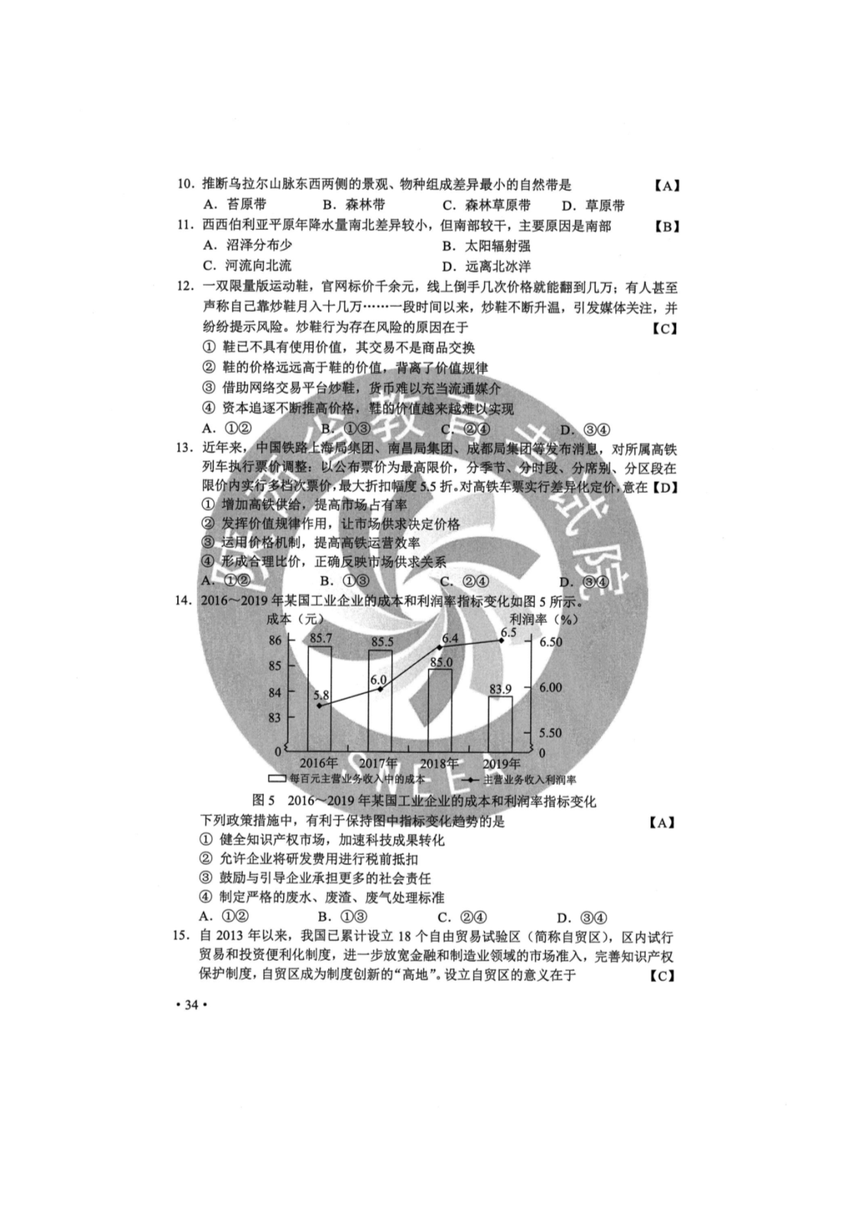 【文档名称】 2020年黑龙江高考文综试题真题及答案(图片版).doc