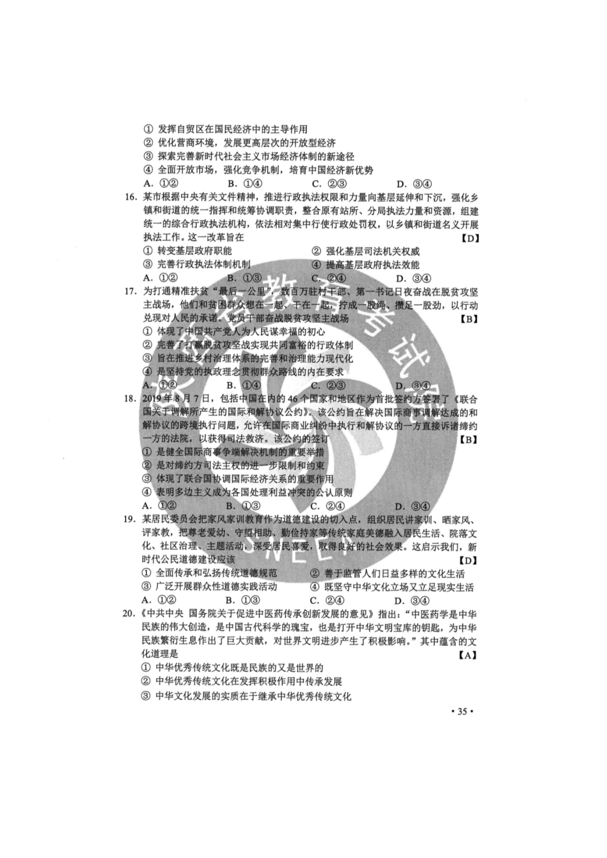 【文档预览】 无忧考网整理发布2020年辽宁高考文综试题真题及答案(图片版),前五页预览如下: