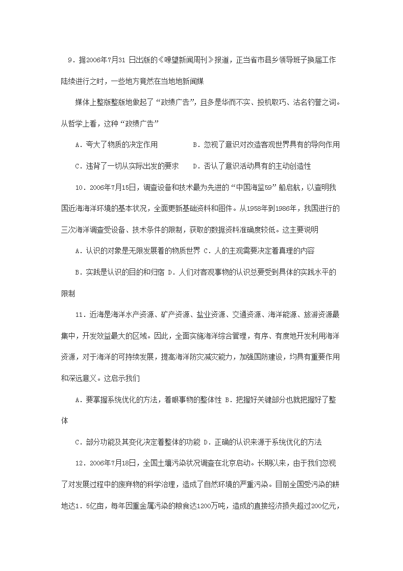 【文档名称】 2014年重庆普通高中会考政治真题(Word版).doc